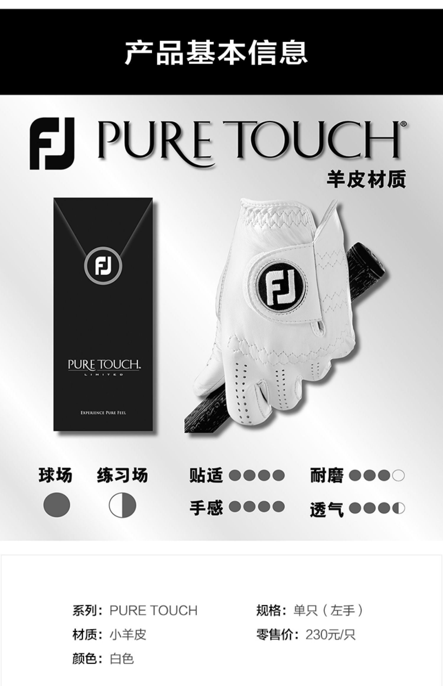 FootJoy golf перчатки мужской Pure Touch Движение овчина перчатки одинарный слева Рука чистая рука
