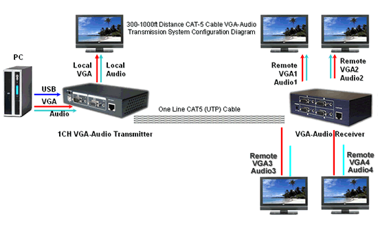 Из-за всей трансмиссии система В нем используется запатентованная технология сбалансированной передачи с взвешенным разделением нуля, поэтому витая пара не будет подвергаться воздействию внешних синфазных помех при передаче сигналов и не будет вызывать внешних электромагнитных помех. Вход приемника UST802R и UST804Rстандартный Стандартный метод подключения EIA / TIA-568B ( белый Оранжевый / оранжевый / белый зеленый/ синий / белый синий /зеленый/ белый Коричневый / коричневый)Интерфейс RJ45, имеет 2 группы и 4 группы независимых стандартный Квази-VGA и стереозвук 3,5 мм частота Выходной интерфейс, подходящий для местного общего дисплейного оборудования( с проекцией Машина, дисплей, TFT-LCD телевизор, PDP)Подключите и низ Каскадное приложение, формат VGA - самый высокая Совместимость с 2300x1920 / 60 Гц на 250 м.