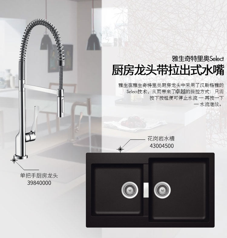 Немецкий бренд Ганс Гранит через кухню 43004500 + 39840000 Кухонный кран