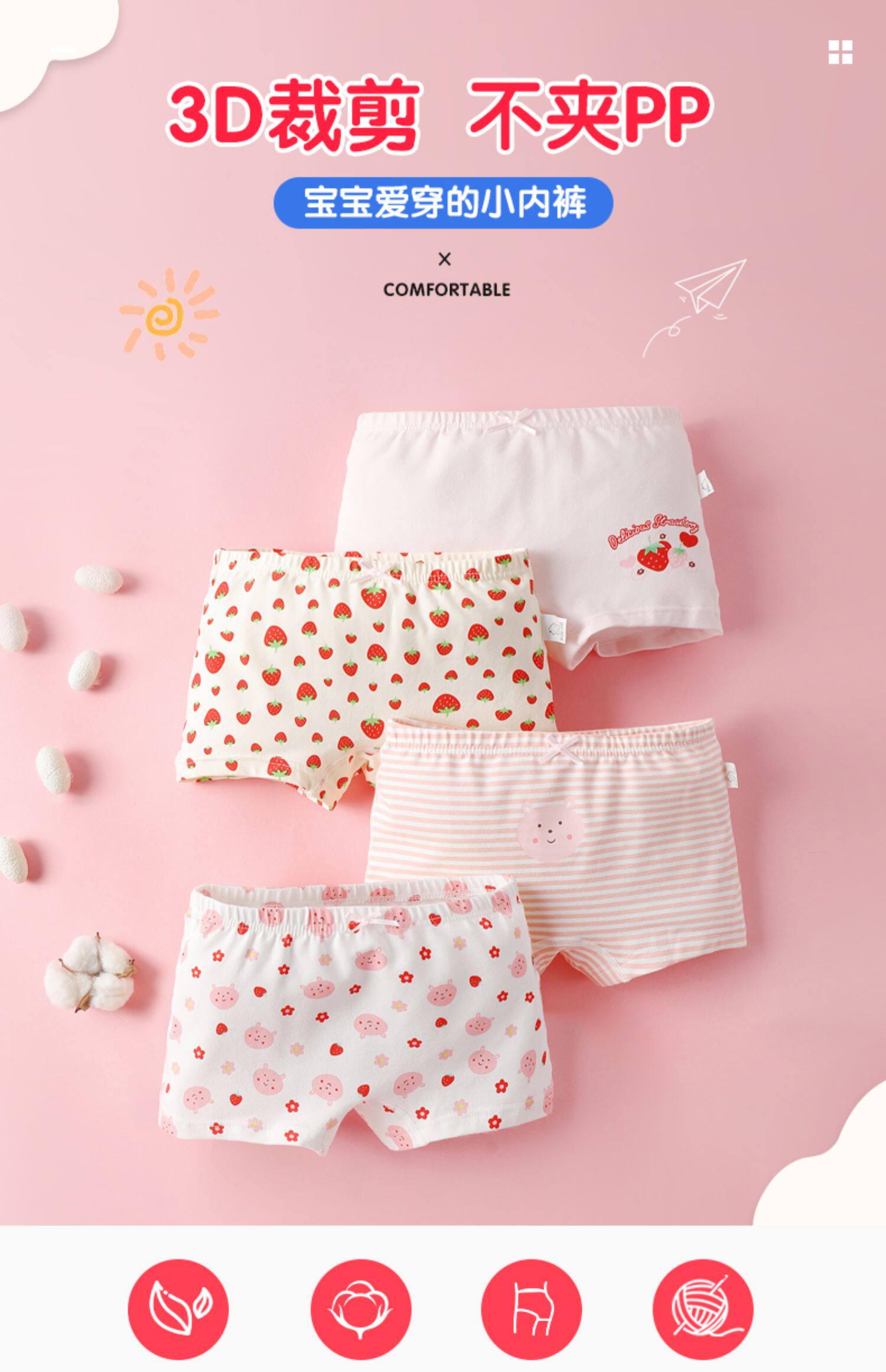 - Класс А. чистый хлопок - клубничный кролик треугольник 4 полосатый SN101