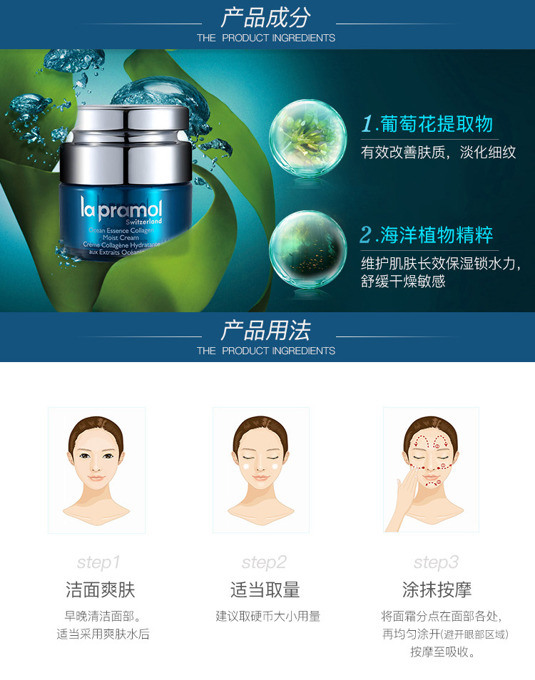 Тайна моря морского морского пехотинца экстраординарные коллагеновые увлажняющие крем 50 г гладкие принт Увлажнение морщин с морщин