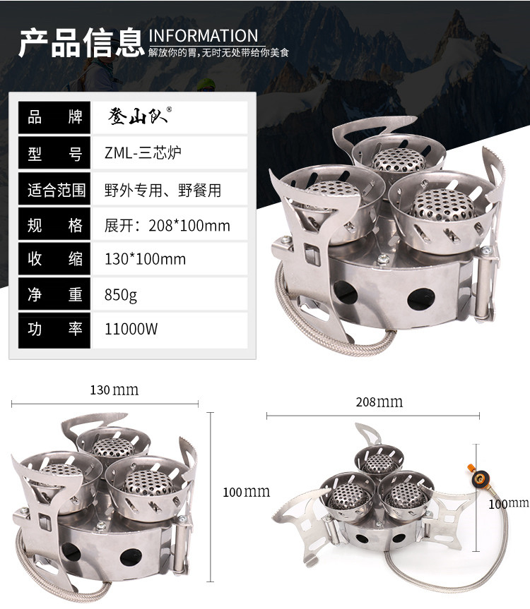 3-х головное противопожарный на открытом воздухе Пешеходная команда Трехъядерная мощная ветрозащитная плита дикая приготовление пищи, газовая печь оборудование