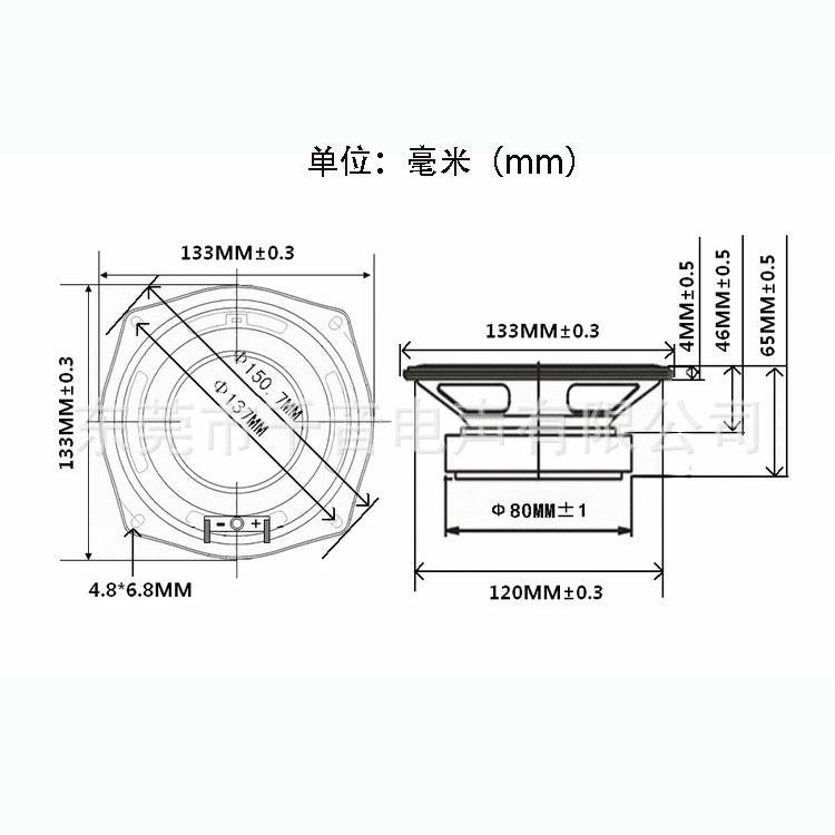 133 мм в диаметре, высокая Степень 65 мм. Среднечастотный динамик
