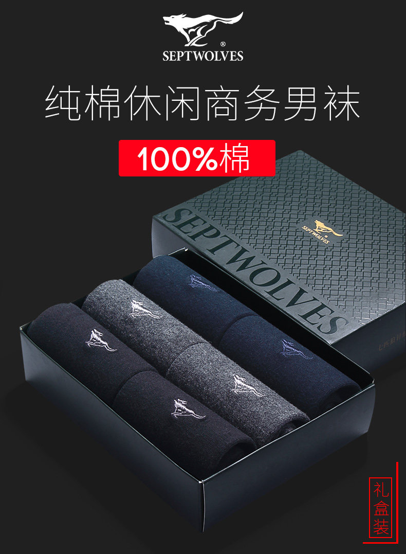7 Волк носки мужской чистый хлопок мужской Носки бизнес черный Деодальный пот средние Носок полностью хлопок Лето тонкий стиль хлопок Носок