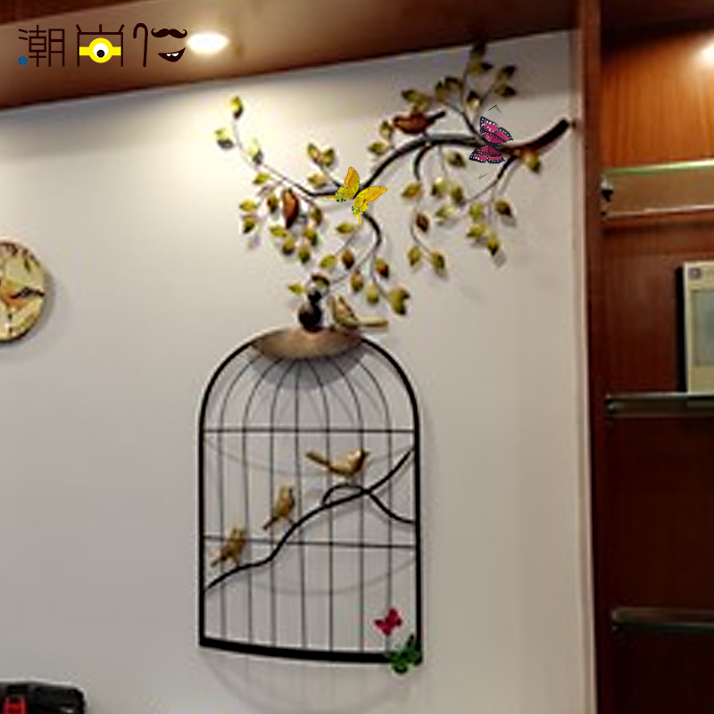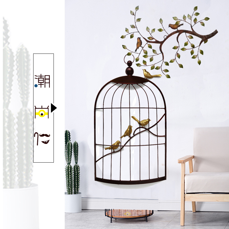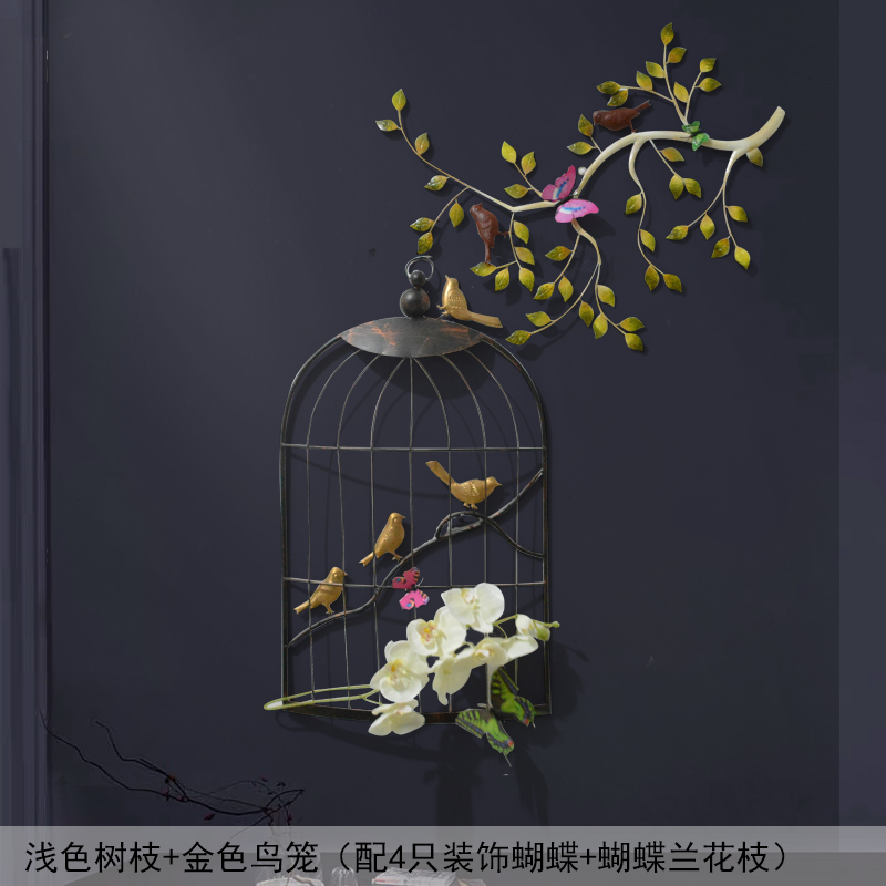 Украшение стен в европейском стиле в виде птичьей клетки из кованого железа, подвесное украшение, украшение для стен, украшение для стен, настенная гостиная светло Объемный кулон из разноцветных веток