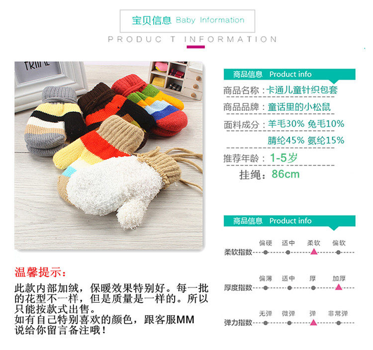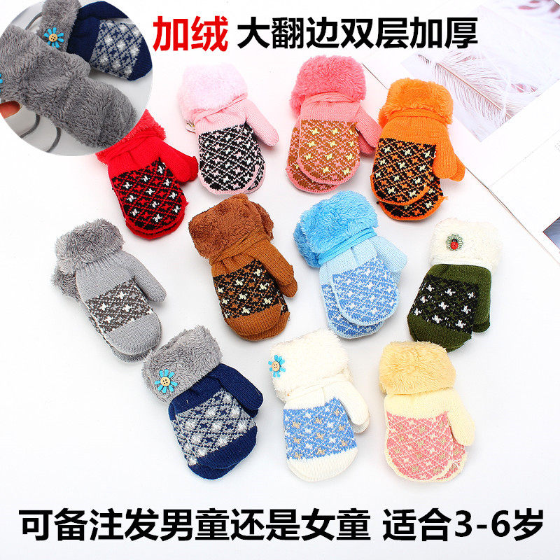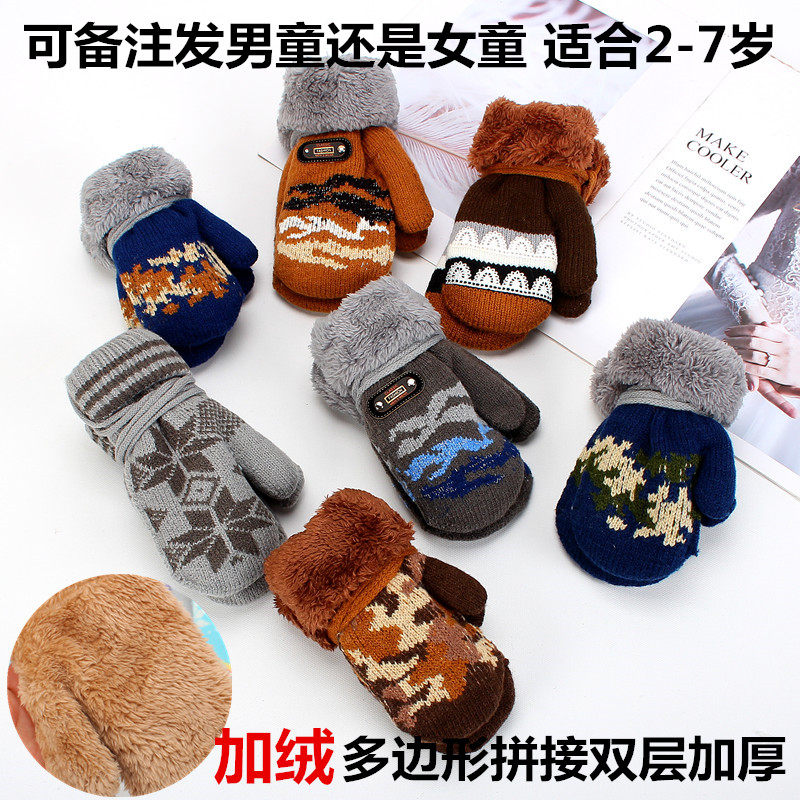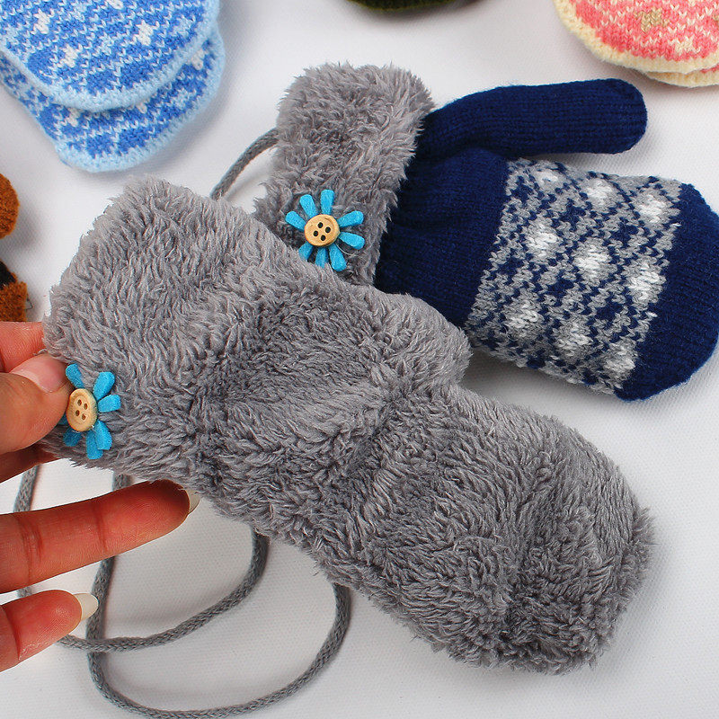 S3 зимний мужские и женские ребенок детские Милый мультфильм молодой детские перчатки шерстяная пряжа удерживающий тепло замшевый Ремешок 1-5 лет перчатки