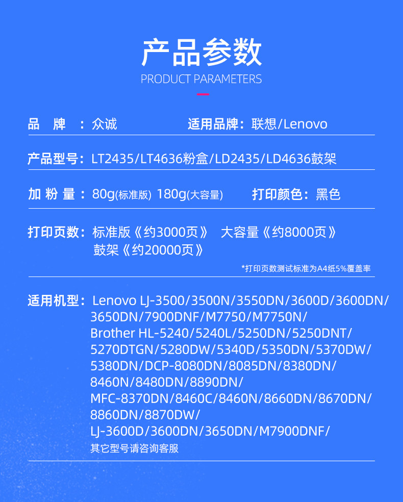 Zhongcheng, применимый к Lenovo LT4636 Powder Box LD4636 CONER CARTRIDGE LJ3600D PRINTER CARTRIDGE LJ3650 M7900DNF комплект Easy Powder LD4636 All -IN -One Drum Carbon Powder Box