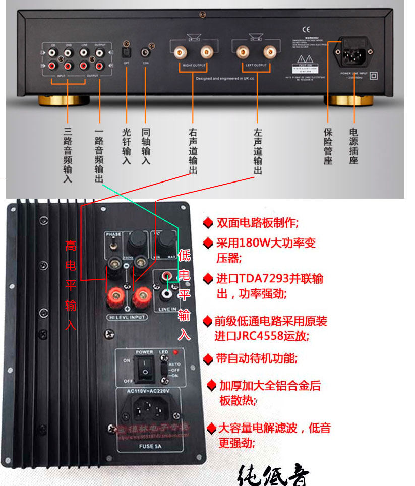Домой имеет источник сабвуферный усилитель панель Домашний усилитель сабвуфера 220В. панель Сабвуфер Pure Bass Усилитель