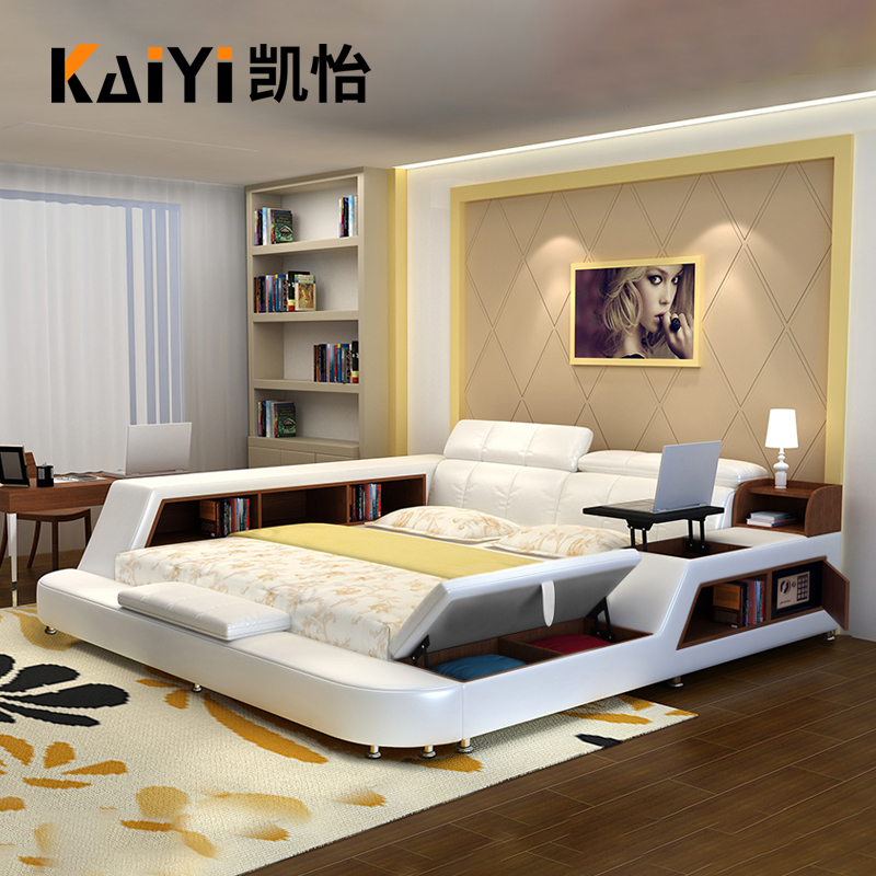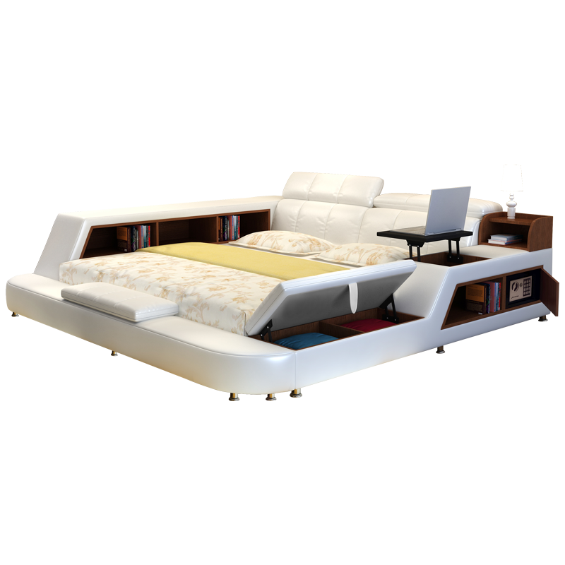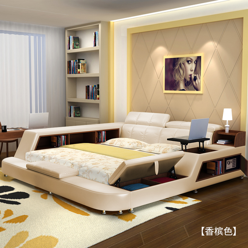 Из натуральной кожи Кровать в главной спальне поколение Многофункциональный умный татами, 2 м, 2,2, большая кровать, ступенчатая спальня, двуспальная кровать свадебное кровать новый