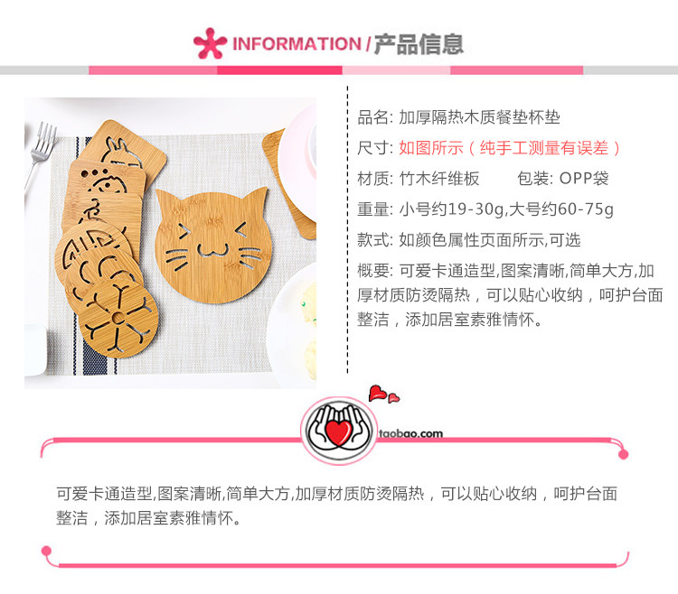 Домашние Деревянный мультфильм изоляционные колодки для столовой столик нескользящие CUSSION CAREIVE Симпатичный Коврик Кубок Кубок Кубок Кубок Кубок Мат