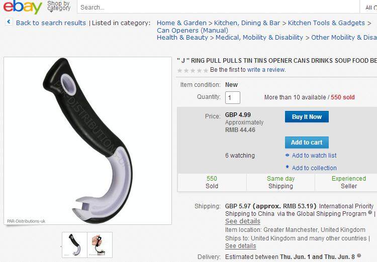 Open ring pull cans with ease with this opener from Jokari. Made especially for ring pull cans this can opener has a J shape that opens them easily. No more struggling to get your fingers under the tab, simply slip the tip under the tab and rock your hand back. It has a comfort grip non-slip handle, perfect for those with arthritis, and is dishwasher safe. Measures: 3-1/2" L x 1/2" W x 6-2/5" H