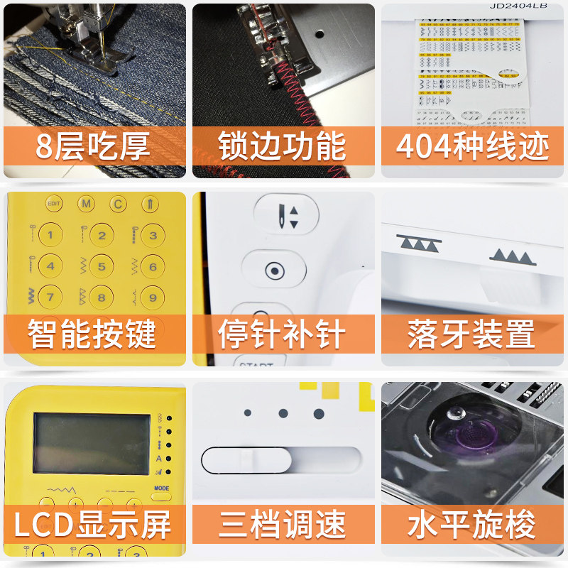 Бантики Solden Electric Компьютерная швейная машина Multi-Function полностью автоматическая JD2404LB Домашнее питание толстая Электронная вышивка машины