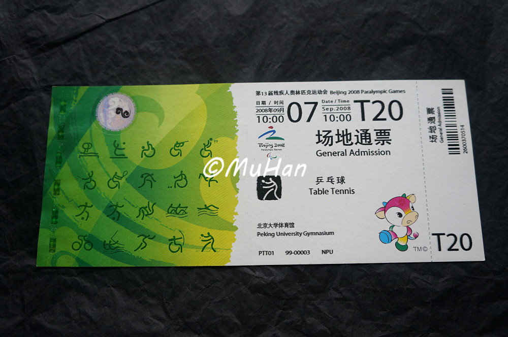 Пекин, 2008 13-е Паралимпийские игры дверь Билет на олимпиаду дверь Настольный теннис полностью проездной билет