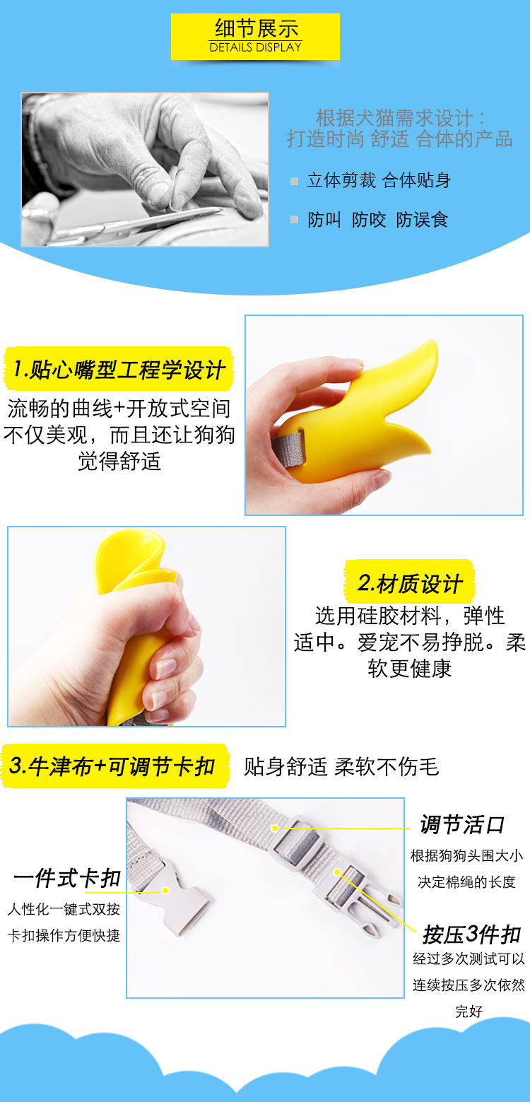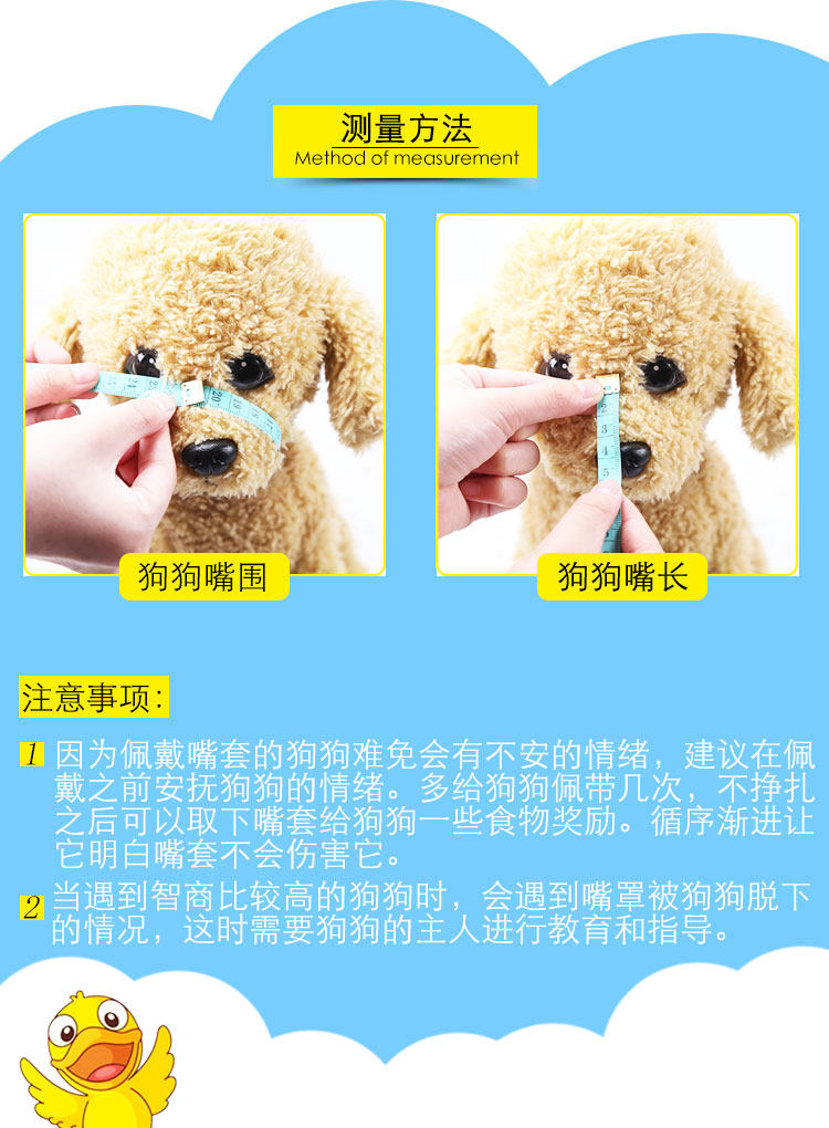 M имеет окружность 15 см и диапазон регулировки головы 17-33 см (рекомендуется корги / шнауцер / VIP) и другие собаки среднего размера с длинной пастью.