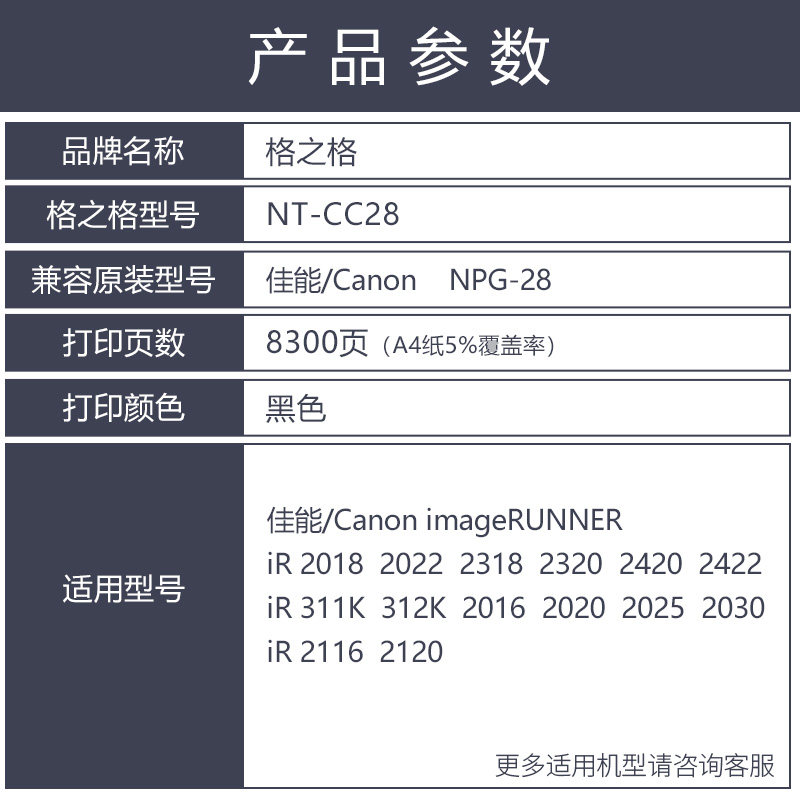 Сетка в оригинальной упаковке Порошковая коробка NPG-28 Подходит Canon IR2420L Тонер 2422D Порошковый склад 2320J Чернильный картридж IR2318 порошковый цилиндр 2022 IR2018