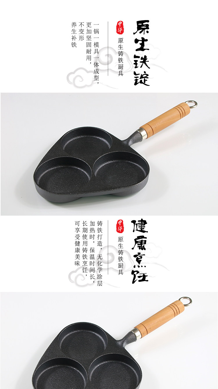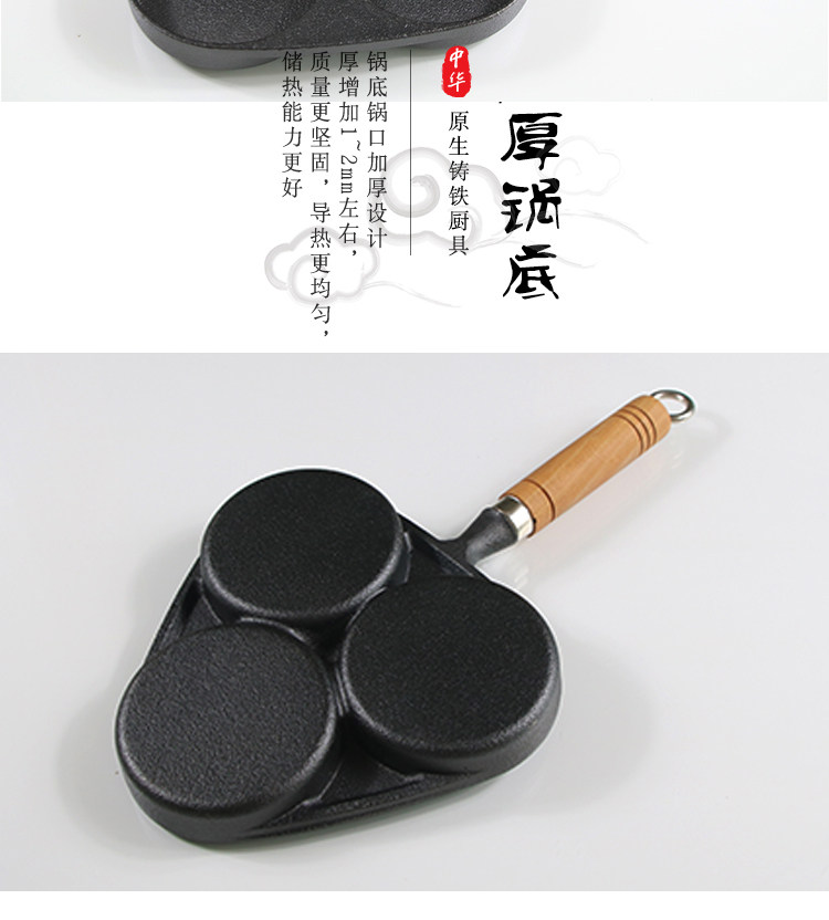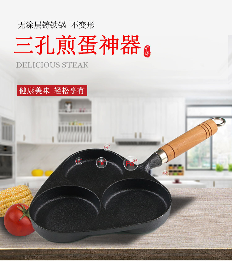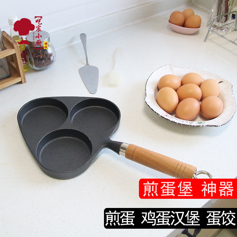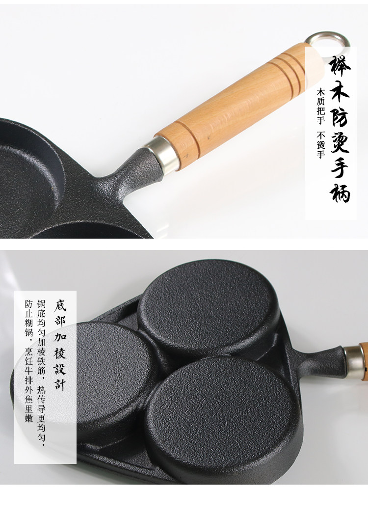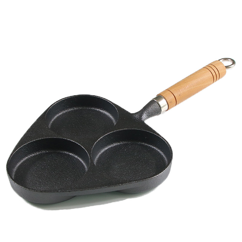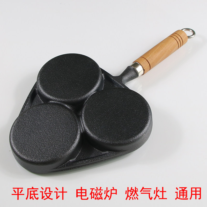 Чугунная сковорода для гамбургеров с тремя отверстиями, мини-сковорода для омлета, сковорода для яичных клецок с антипригарным покрытием на плоской подошве Маленькая сковорода для индукционной плиты