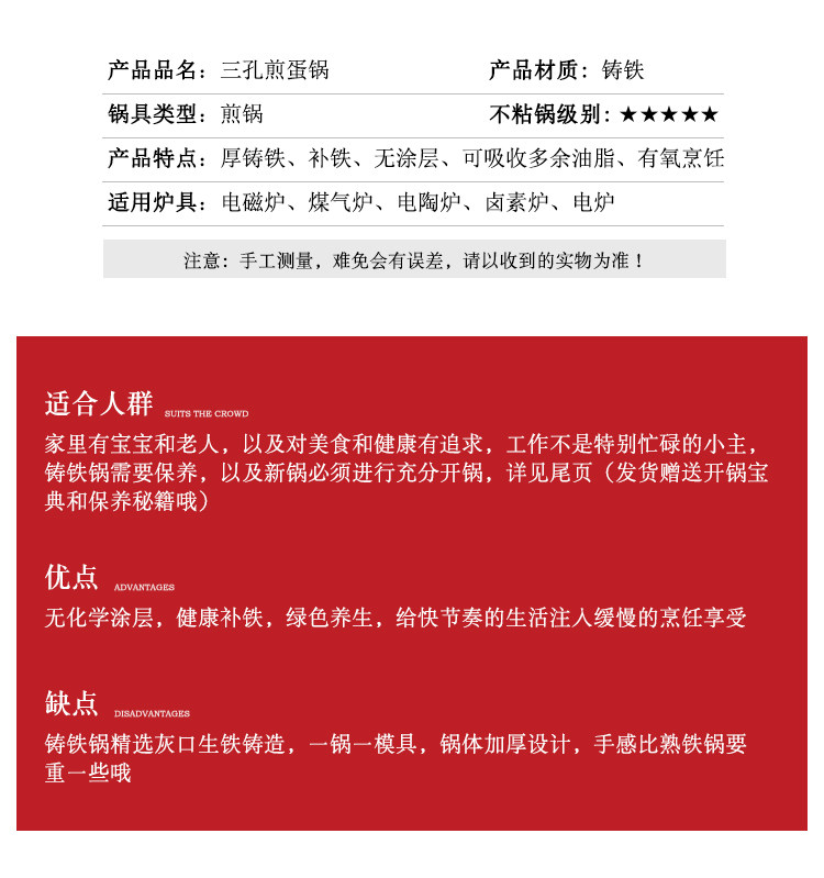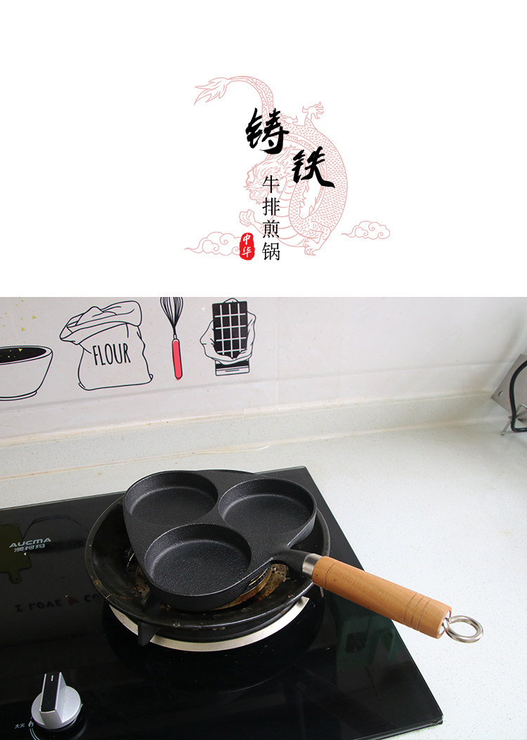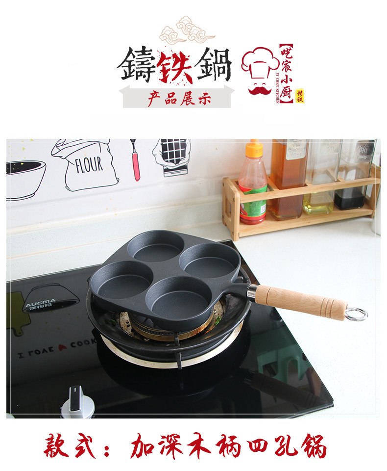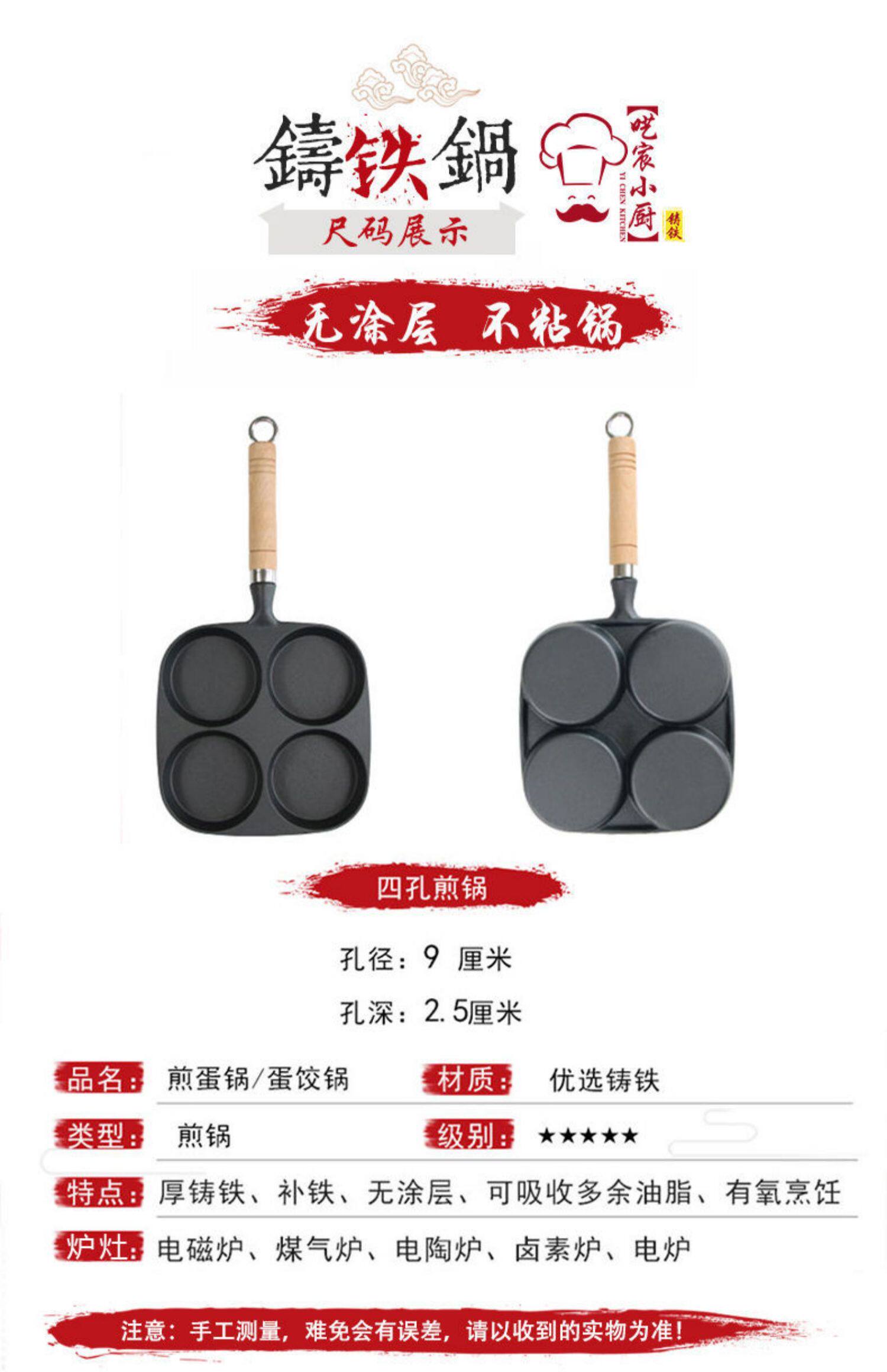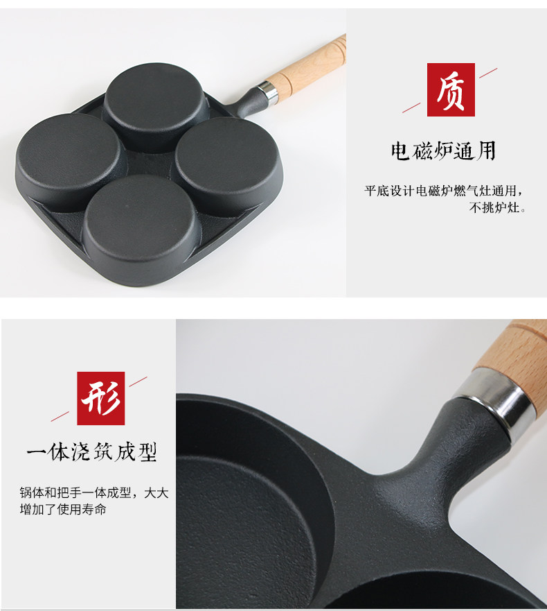 Чугунная сковорода для гамбургеров с тремя отверстиями, мини-сковорода для омлета, сковорода для яичных клецок с антипригарным покрытием на плоской подошве Маленькая сковорода для индукционной плиты