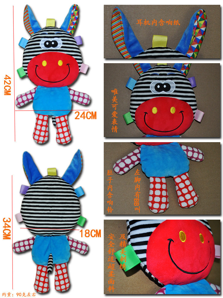 Четыре угла цвет Бобовые погремушки, гуттаперчи, треугольные кольца и укусы ткани, голова котенка неподвижна. имеет Устройство BB. полностью Министерство экологии усыновления хлопок Материал, вельвет Текстура.