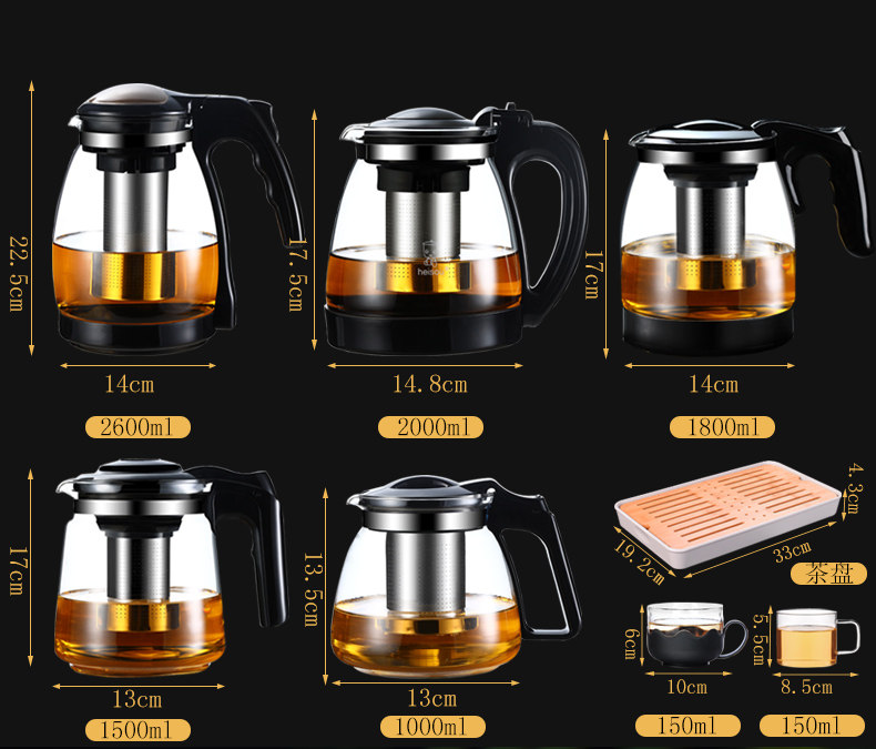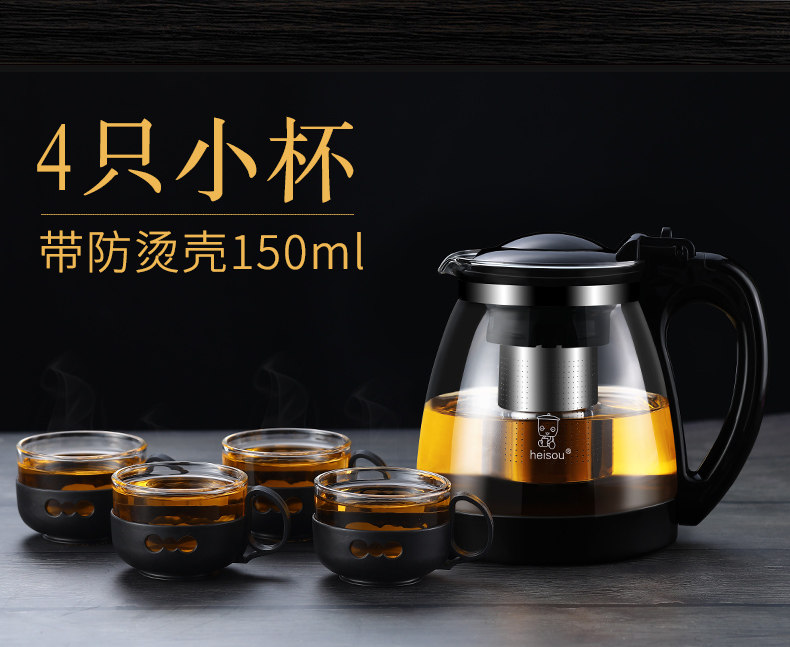 Чайник Стеклянный чайник Бытовой чайник один Большой термостойкий фильтр Заварочный чайник кунг-фу красный Чайный сервиз комплект