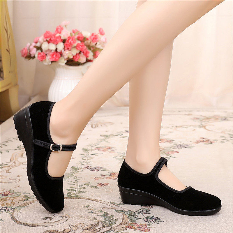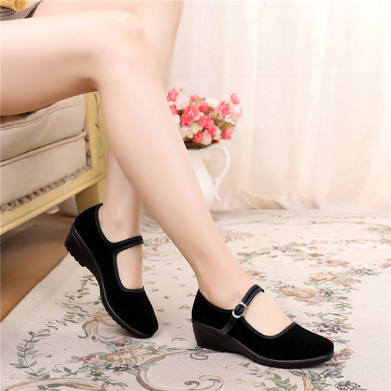 Новая коллекция Старая пекинская ткань обувь Женская обувь на танкетке туфли Мягкие мастерские пола черный Отель Обувь нескользящие Танцующая матери Обувь