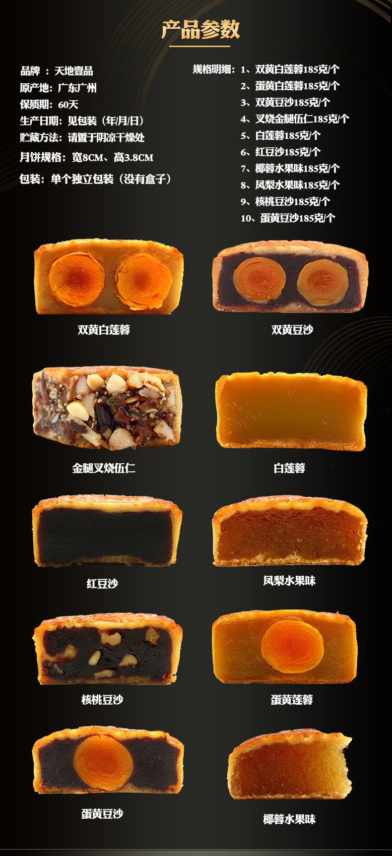 Tiandi 品 五 仁 Лунный торт 185г ручная работа Старинные золотые ноги, большой упакованный фестиваль среднего осени