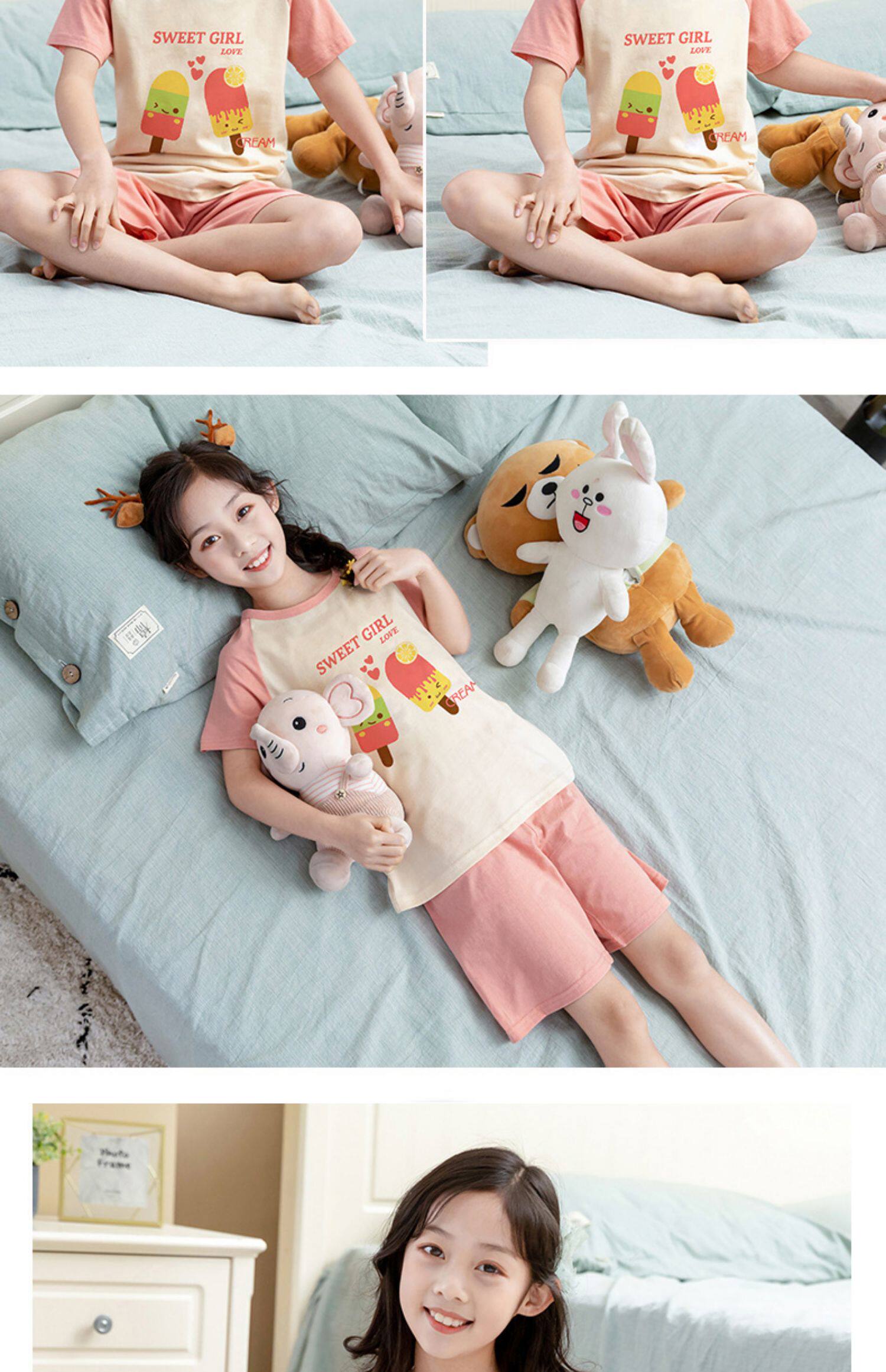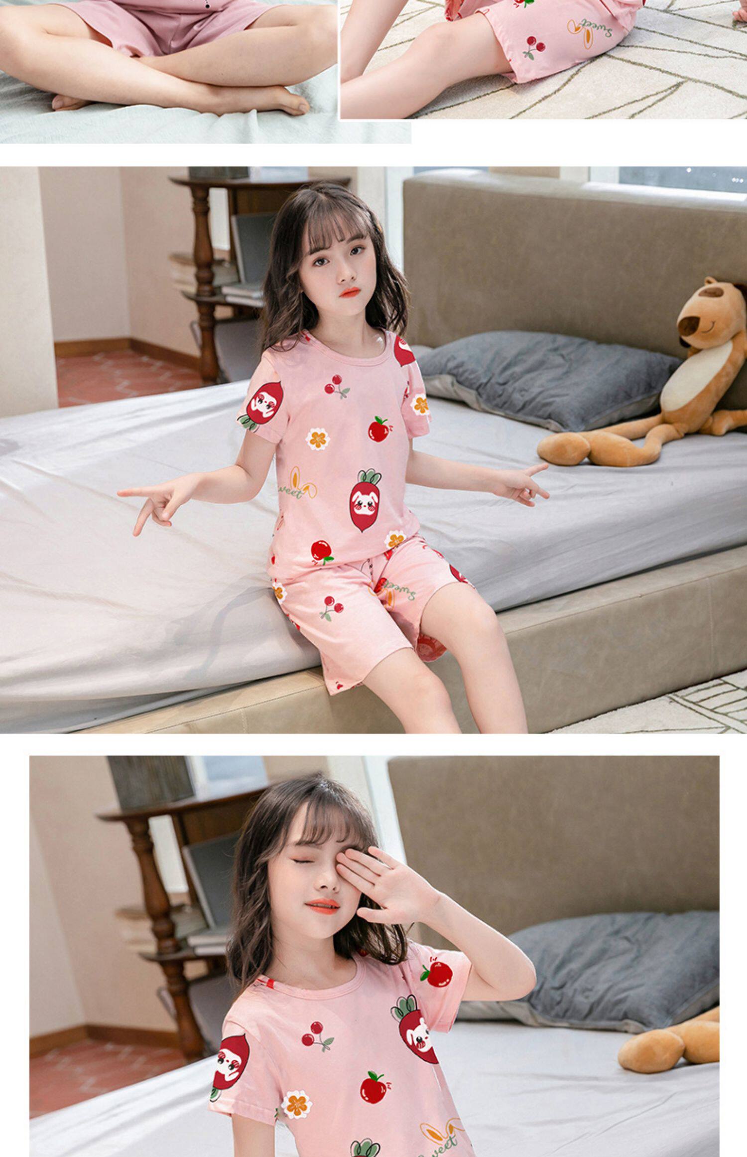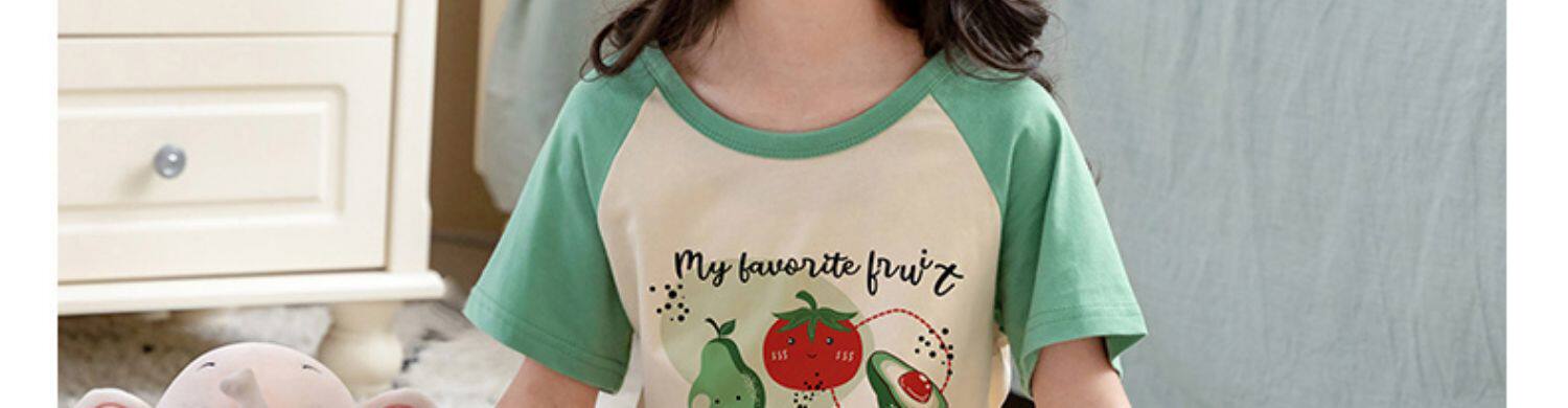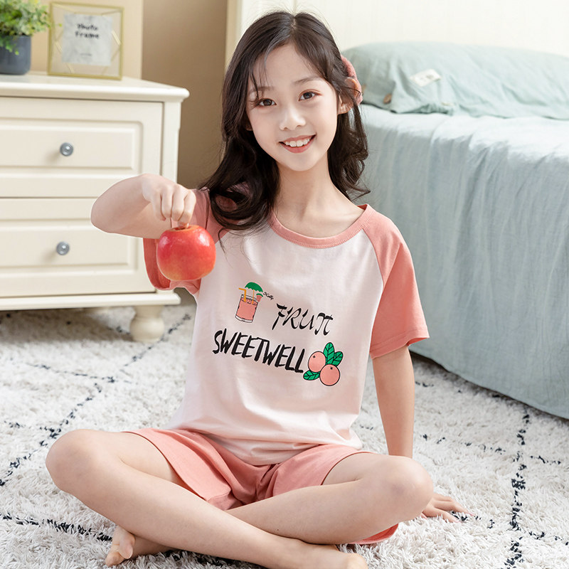 Детские пижама комплект на девочку Трексуит чистый хлопок Ребенок короткий рукав детские Тонкий стиль Девушка кондиционер для маленькой принцессы лето