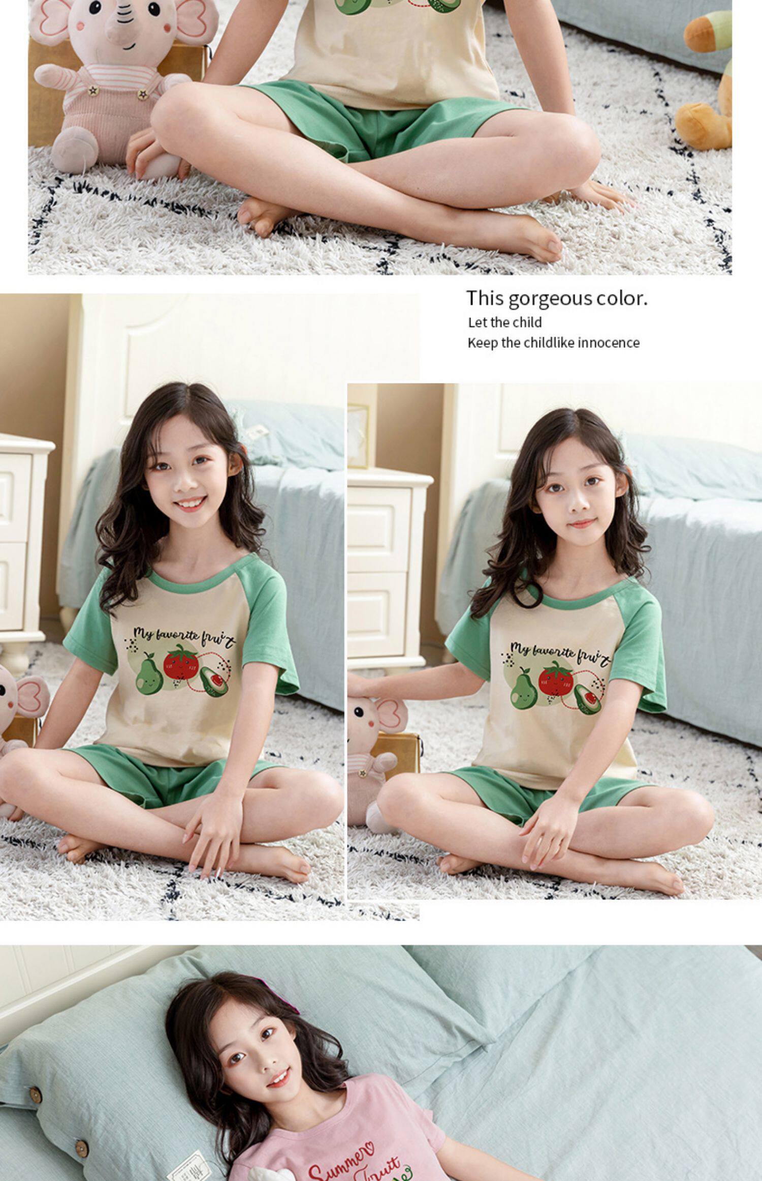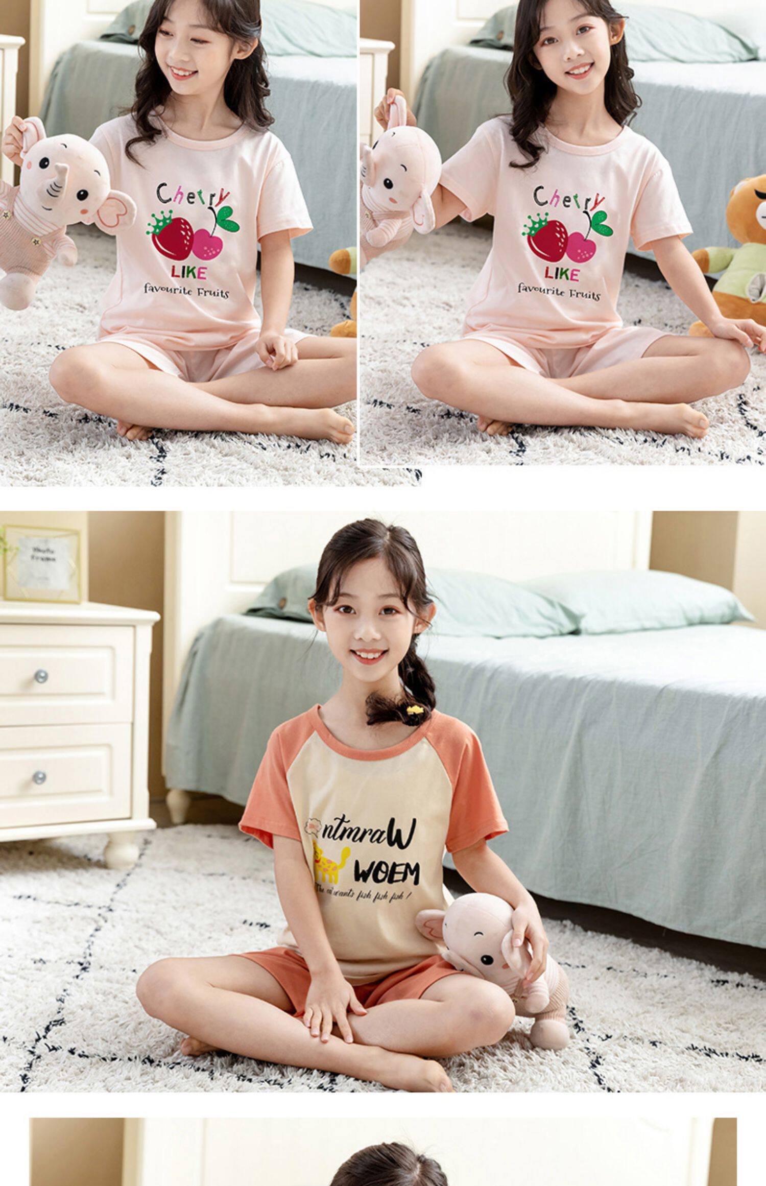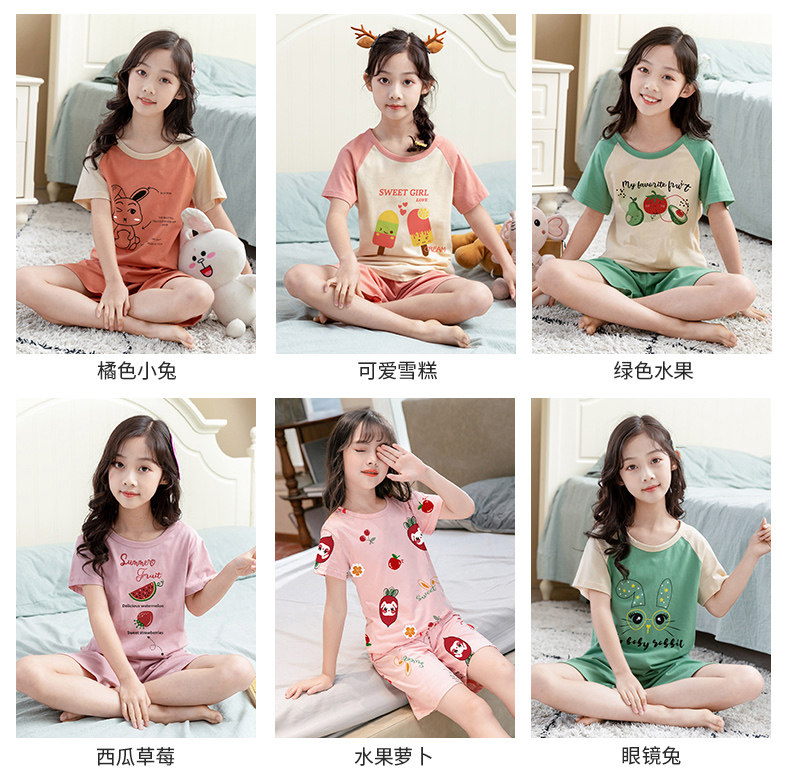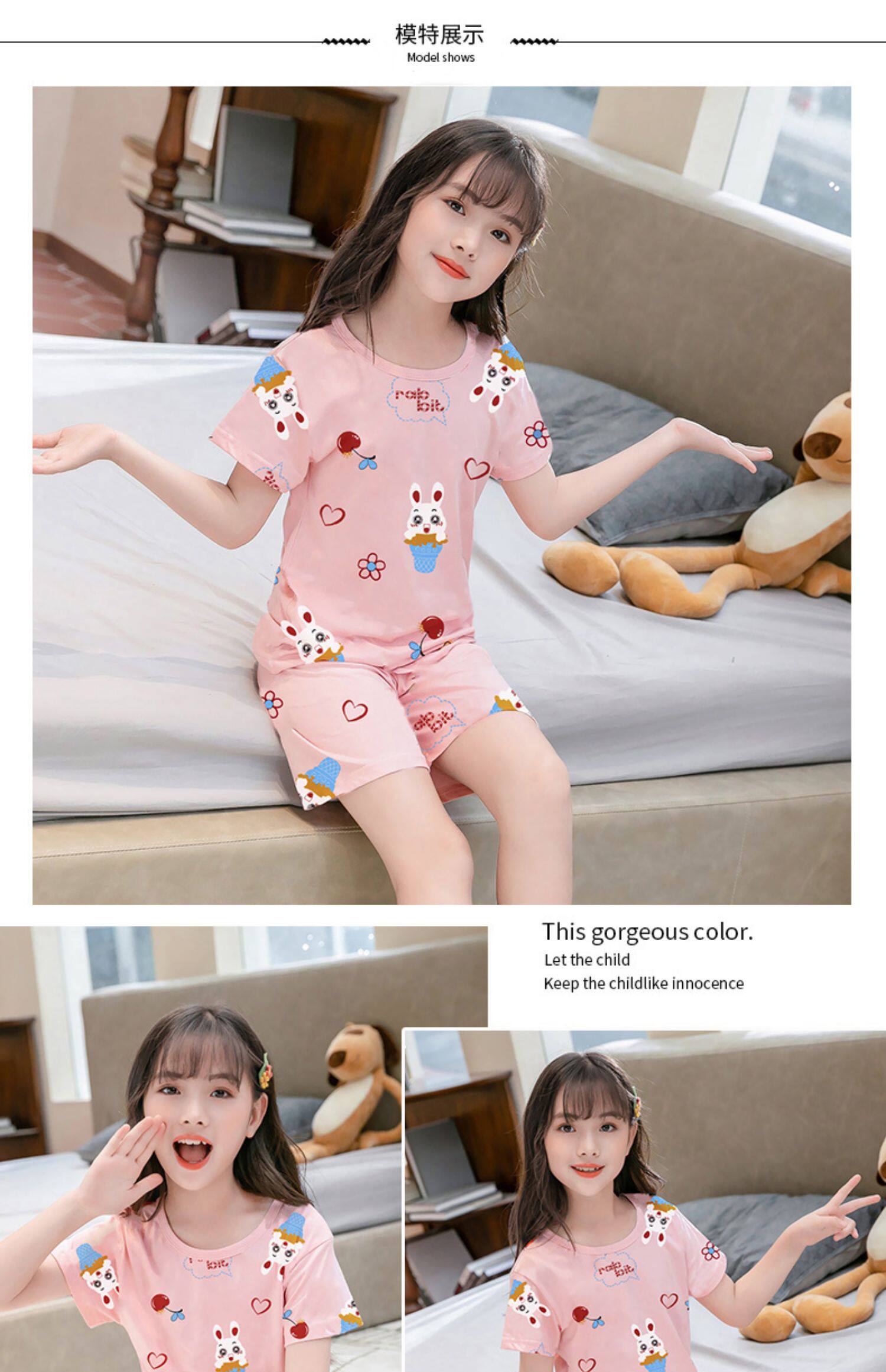 Детские пижама комплект на девочку Трексуит чистый хлопок Ребенок короткий рукав детские Тонкий стиль Девушка кондиционер для маленькой принцессы лето