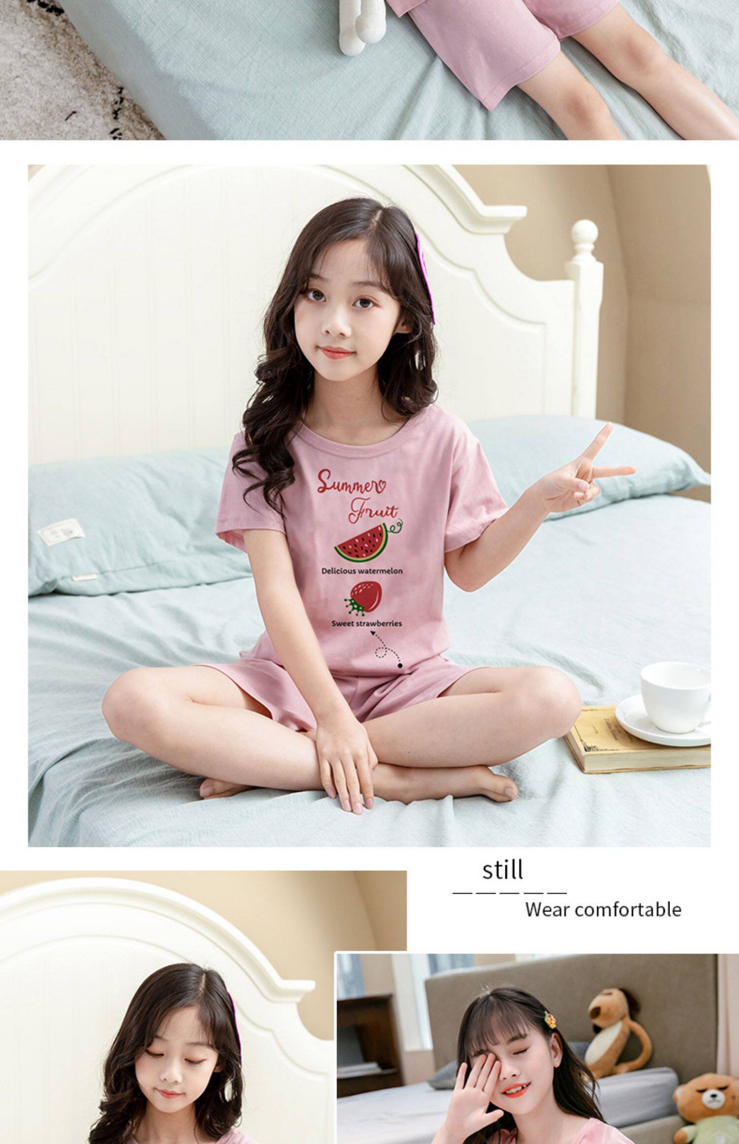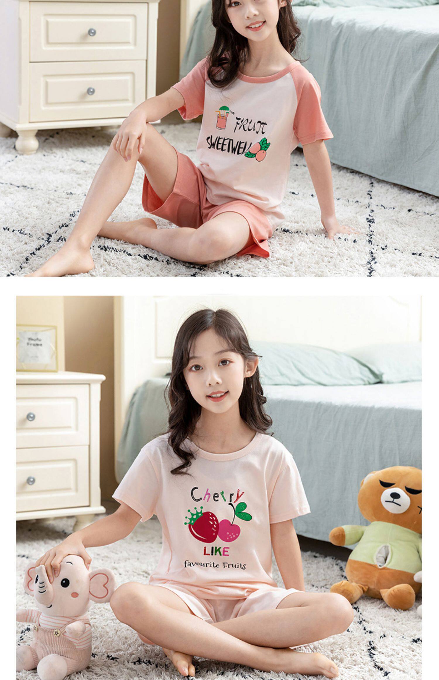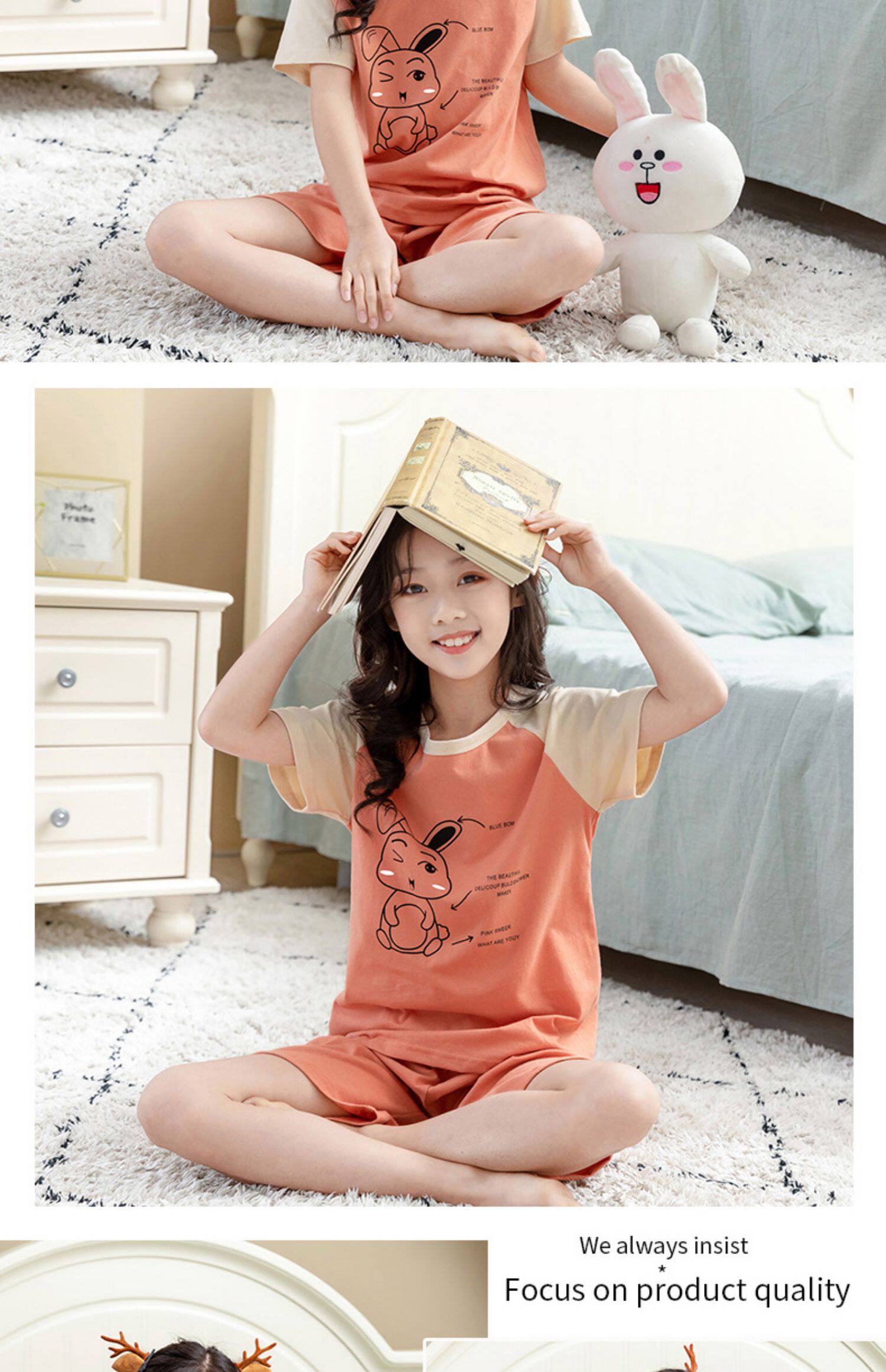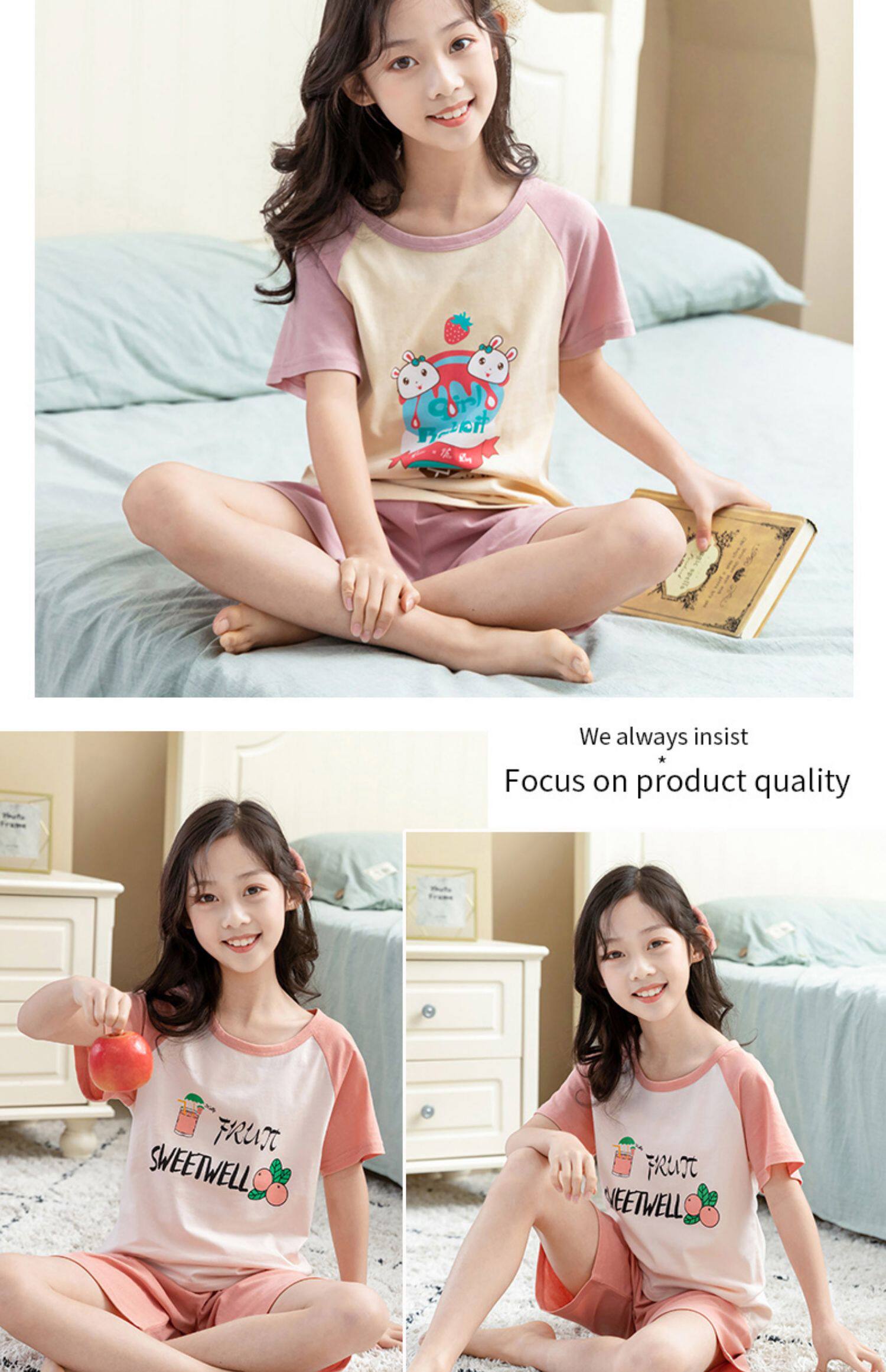 Детские пижама комплект на девочку Трексуит чистый хлопок Ребенок короткий рукав детские Тонкий стиль Девушка кондиционер для маленькой принцессы лето