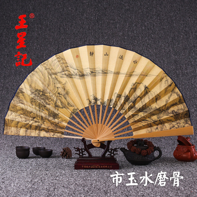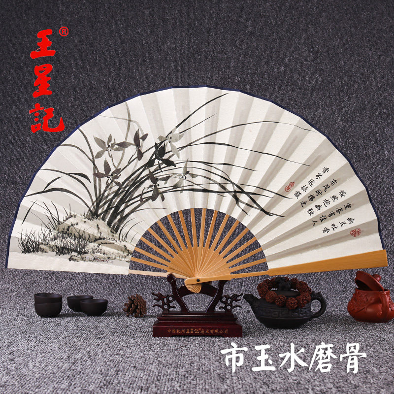 Ван Xingji Fan Складной вентилятор Китайский стиль мужской Вентилятор нефритовые кости черный Вентилятор Tsing Лето Hanfu нести подарок вентилятор