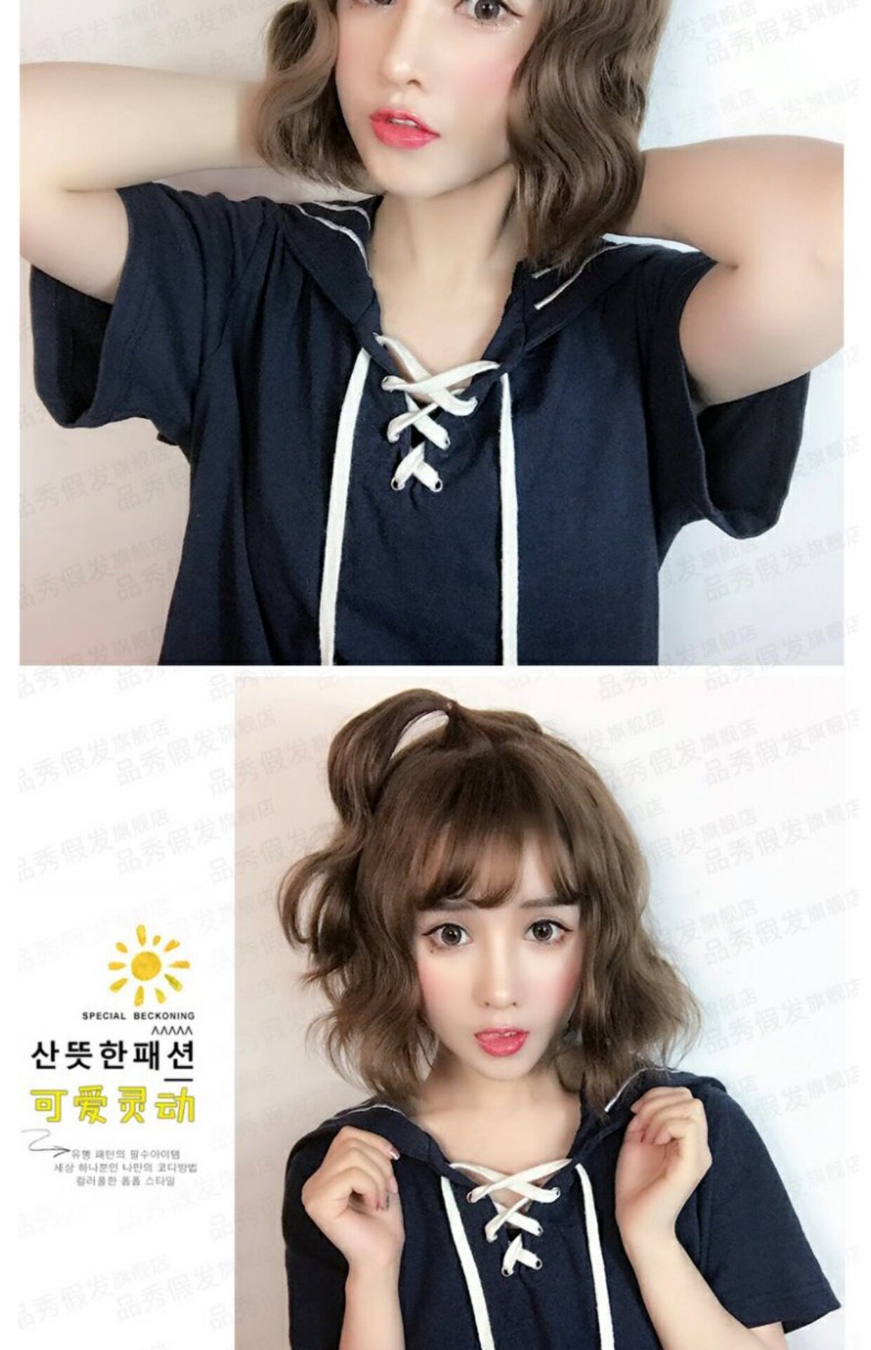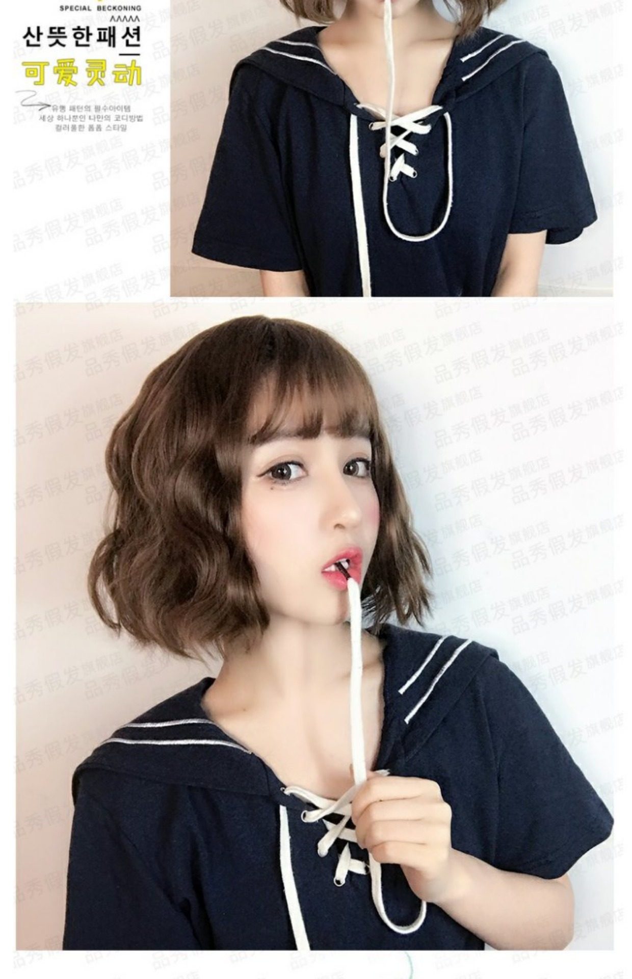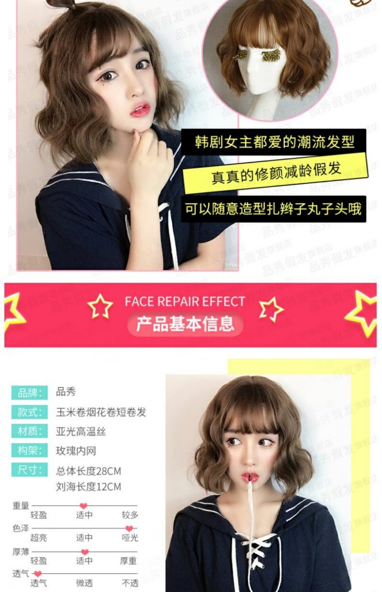 品秀 假 发 女 短 蓬松 修修 锁 骨 природа корейский Air Liu Sea Corn Curly Bobo Head Mastmetime