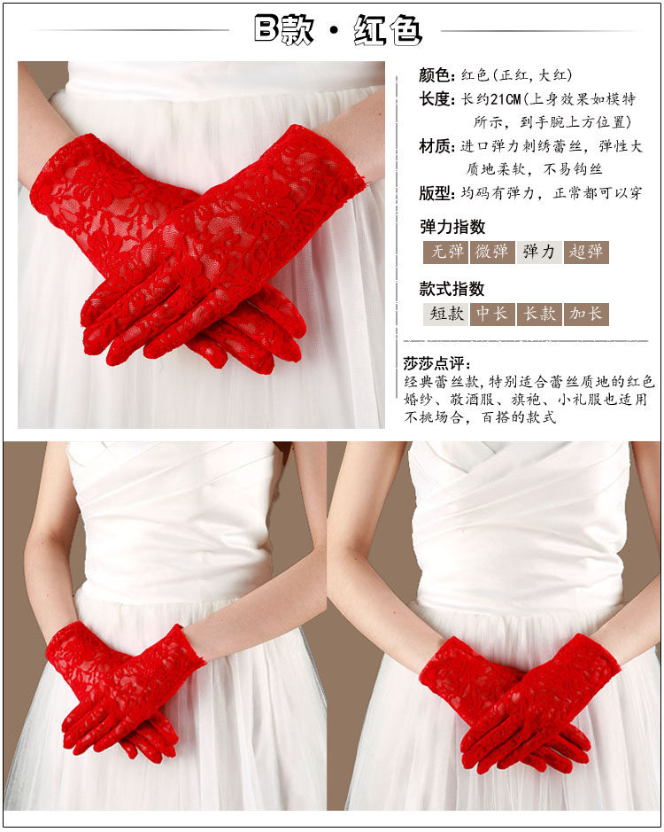 Корейское кружево новый Свадебное платье матери перчатки красный Полый длинный короткий свадебное Девушка с солнцезащитным кремом перчатки Простота демисезонный летом