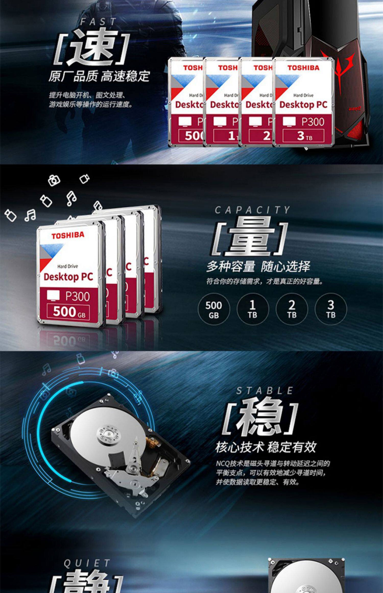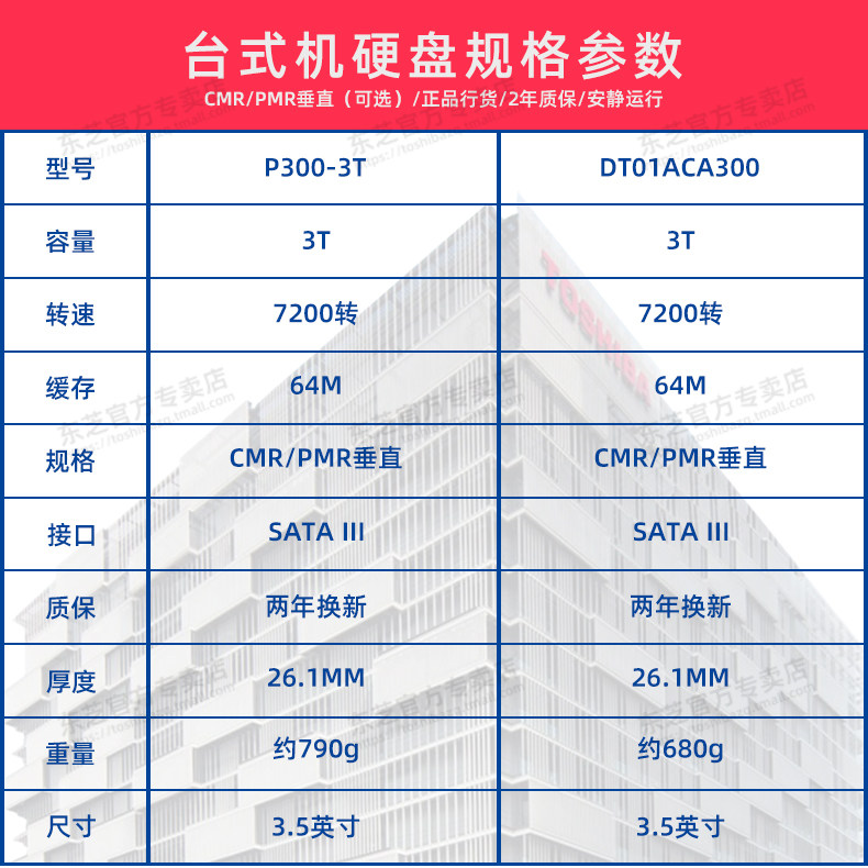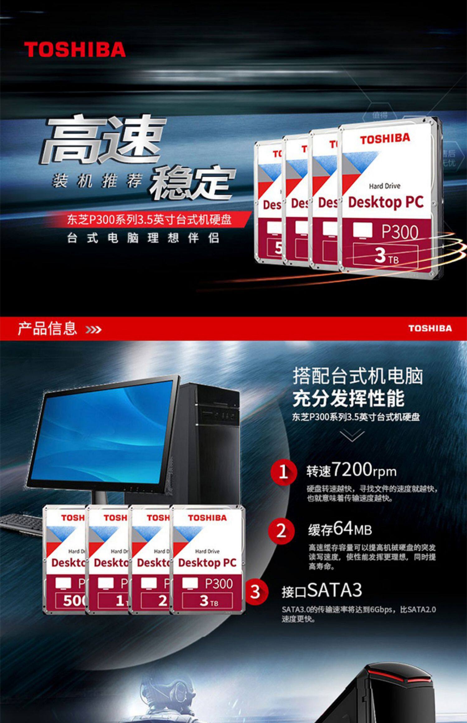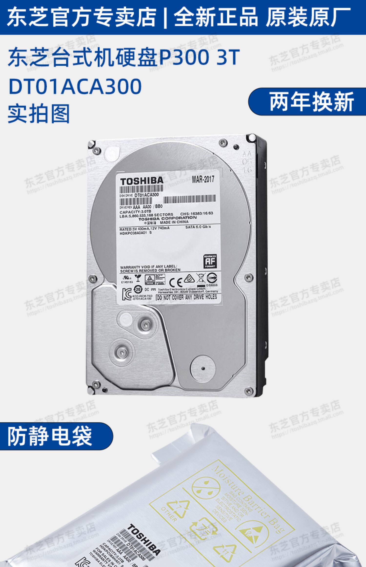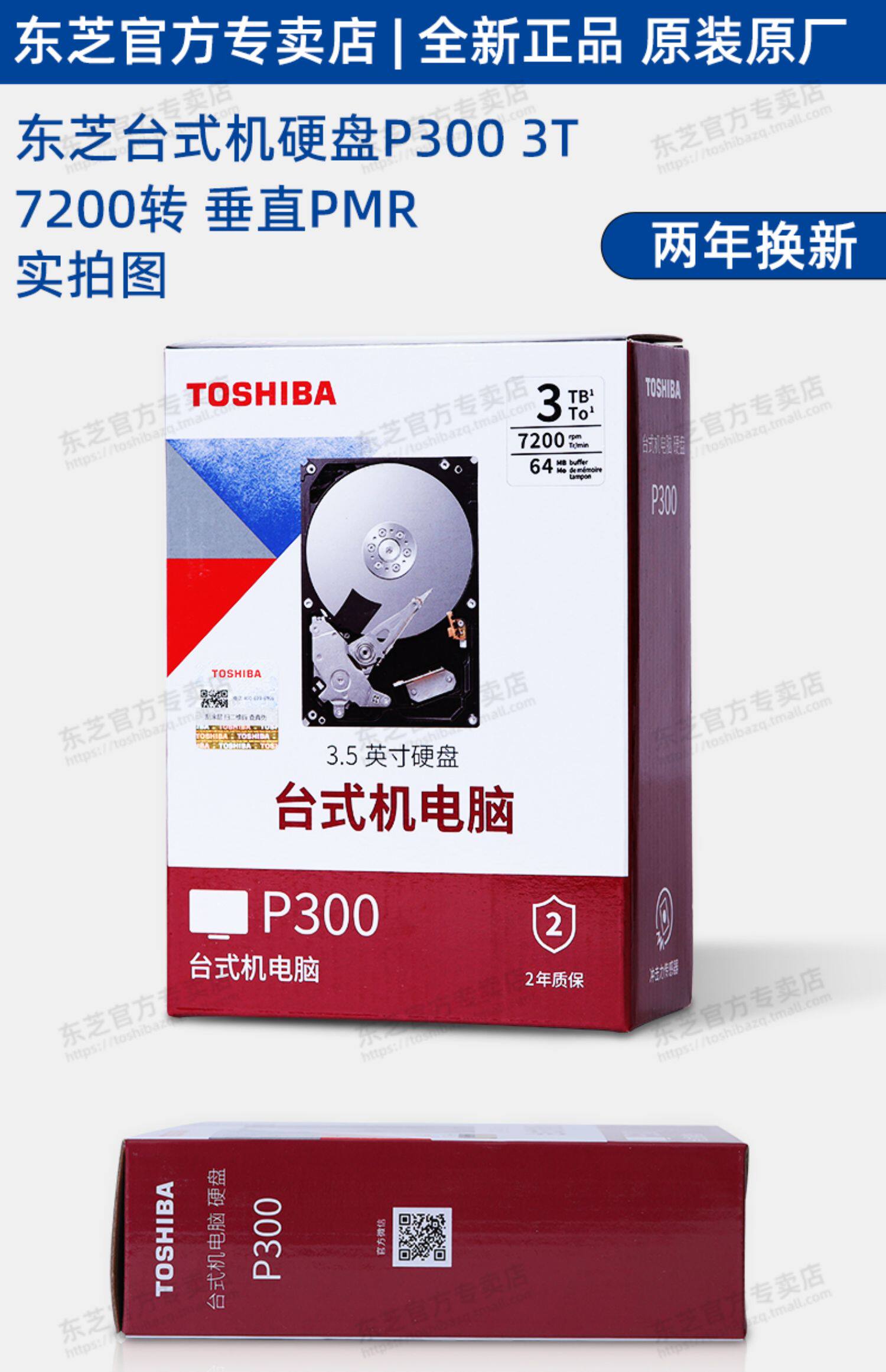 Toshiba / Toshiba машины жесткий диск 3T P300 3T 7200 поворот вертикальный PMR / CMR мониторинг RAID большая емкость 3,5 дюйма настольный компьютер жесткий диск 3TB DT01ACA300