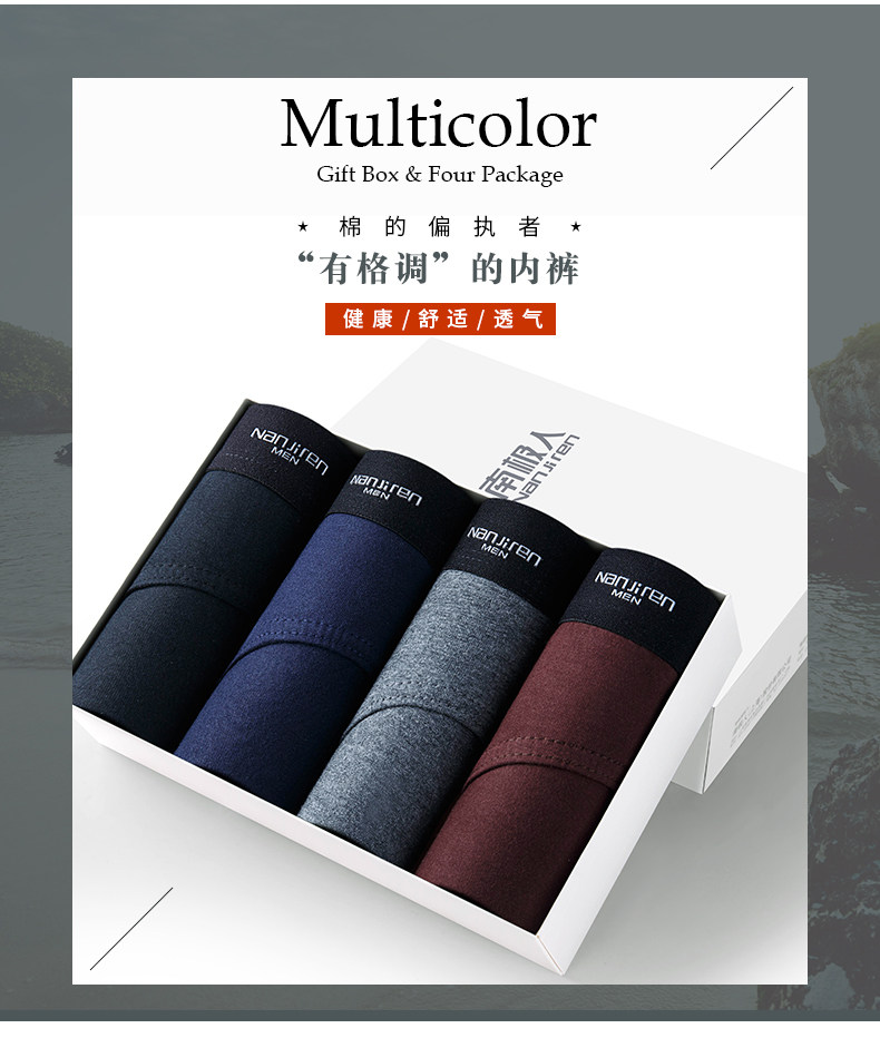 Антарктика 4. полосатый Коробка мужской Нижнее белье мужской Путешествие чистый хлопок качественный молодежный воздухопроницаемый Сексуальный и милый большой размер Штаны