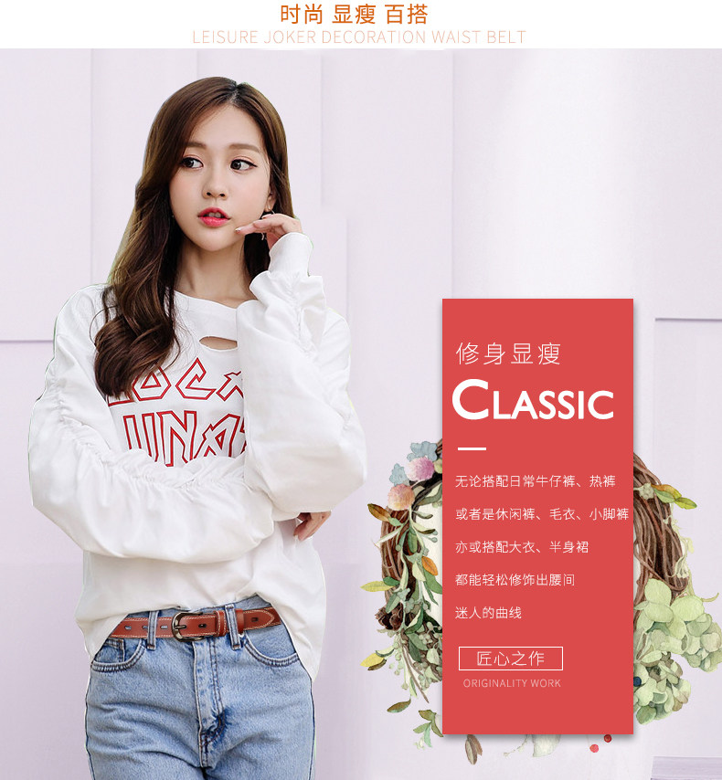 Ремень женский минимально корейский Пустой из натуральной кожи женский ремень женский кожаный корейская версия для отдыха Учебный пояс стрелка с застежкой