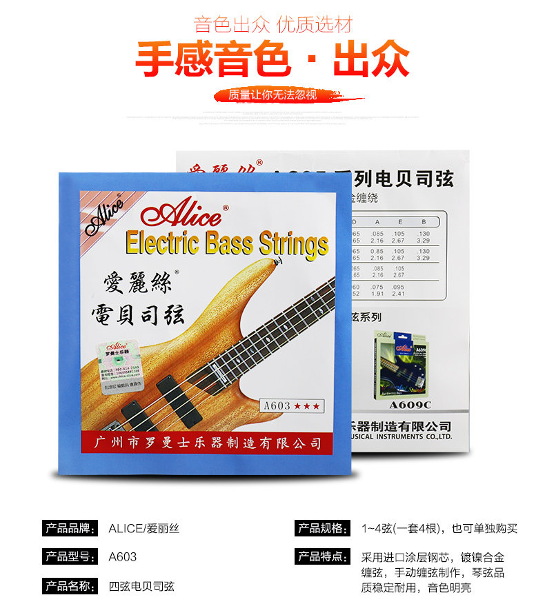 Струна для электрической бас-гитары Alice Alice Струна для бас-гитары A603-M, четыре струны 045-015, ощущение гладкости