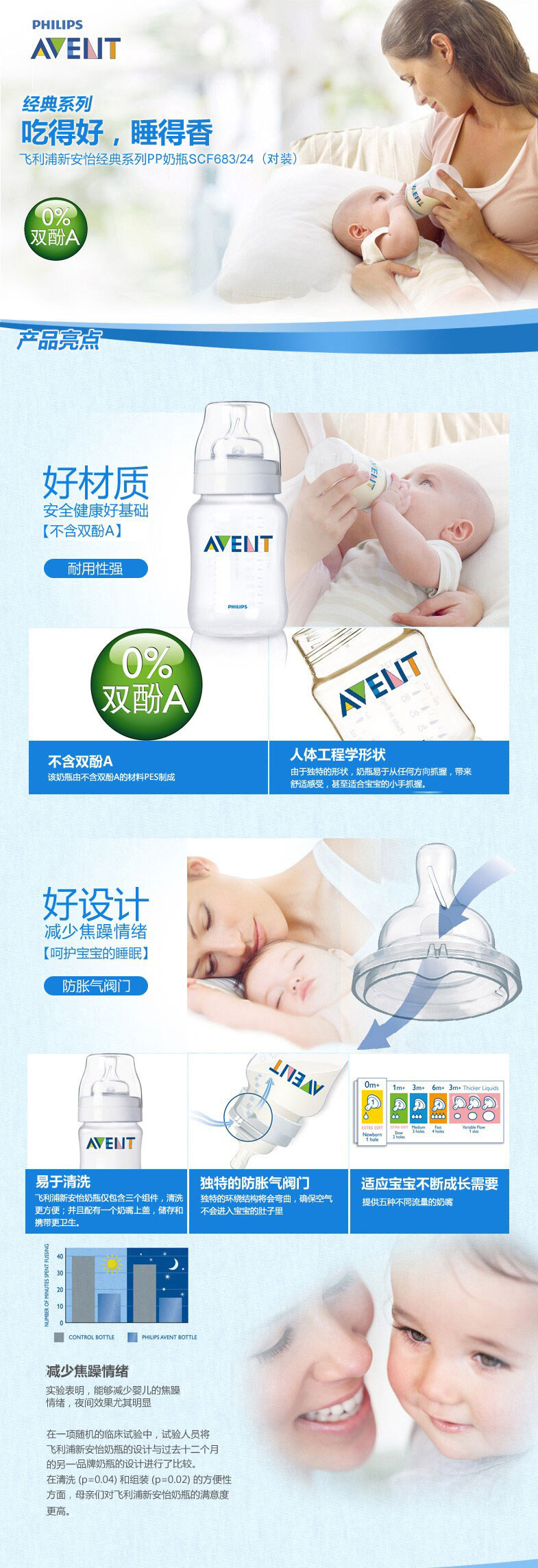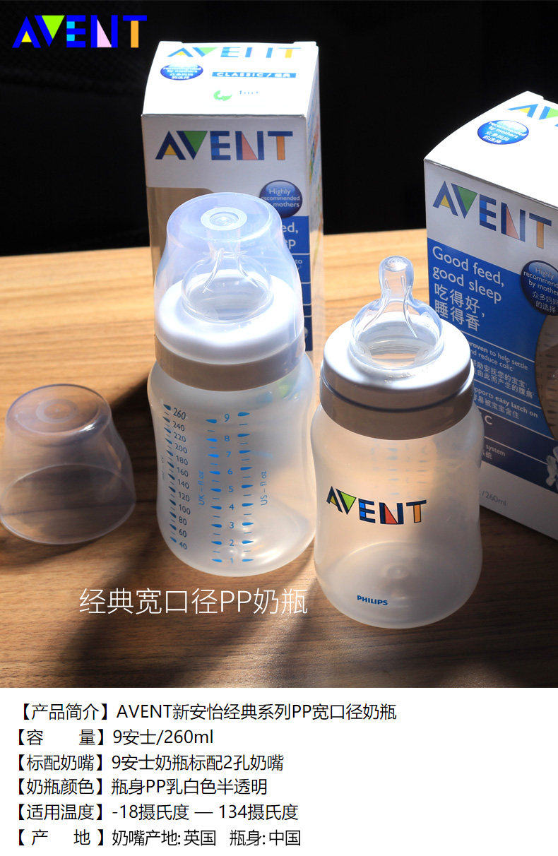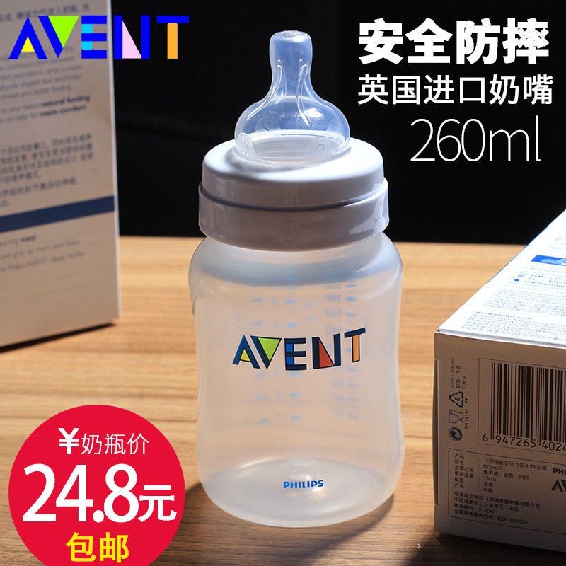 Распродажа 】 новый Anyi Avent на младенца Бутылка детские Бутылка пластика ПП против падающего сутры классический Широкий диаметр 260 мл