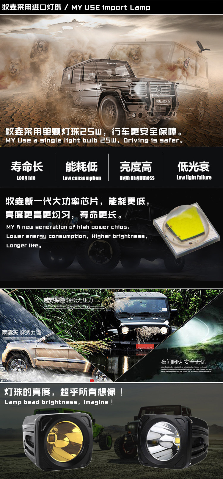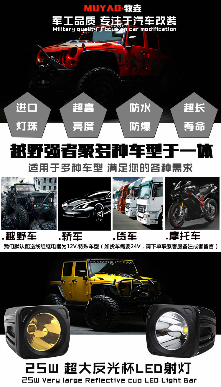 Автомобиль светодиодный снимок свет Wrangler BJ40A Съемка колонны свет Крыша свет Мотоцикл передняя планка свет Желтый свет тумана свет Дальний луч свет