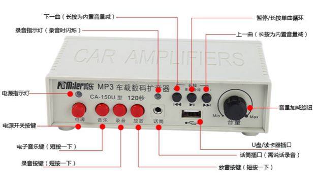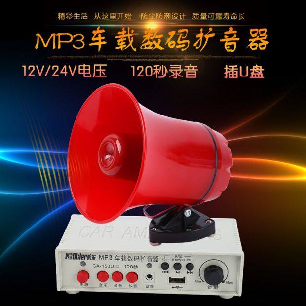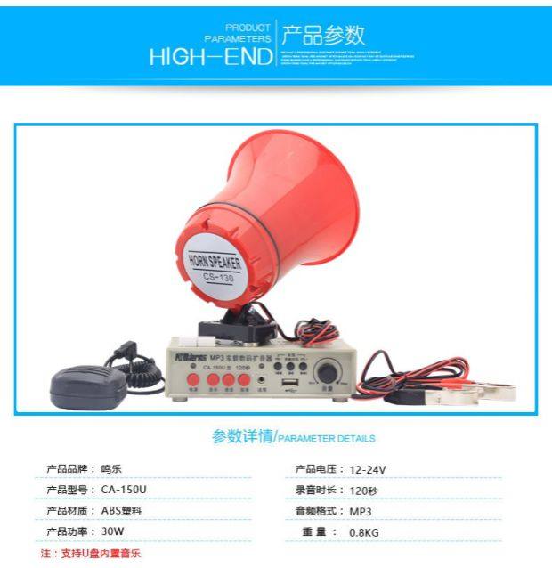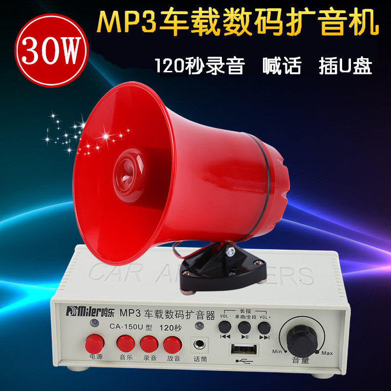Мин 150U Усилитель автомобиля Спикер Выкрикивающая запись 120 секунд 12-24 В Высокая мощность 30 Вт Картовый динамик