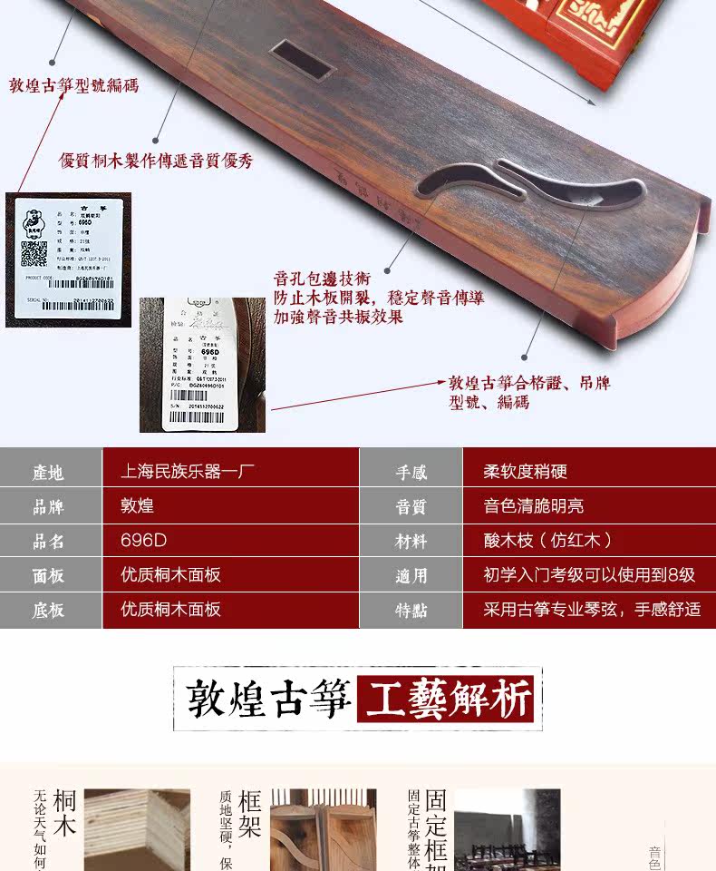 Dunhuang Guzheng 696d Shuanghe Chaoyang non -sandalwood верх Морской национальный музыкальный инструмент оригинал в подарок Большой подарок пакет
