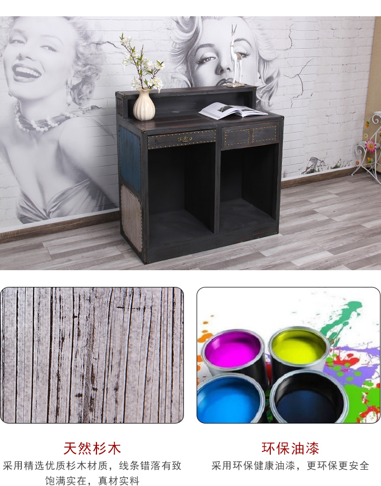 Американская сельская местность винтаж Кассир старый твердой древесины стойка для ногтей красота ногтей 理发 店 Simple с угловой стойкой регистрации