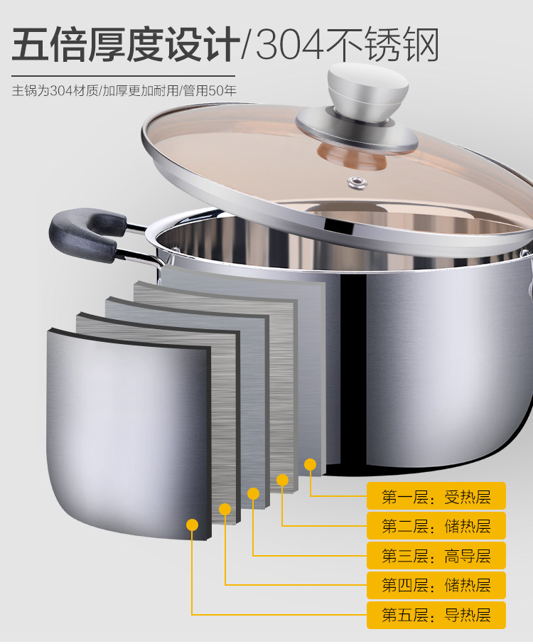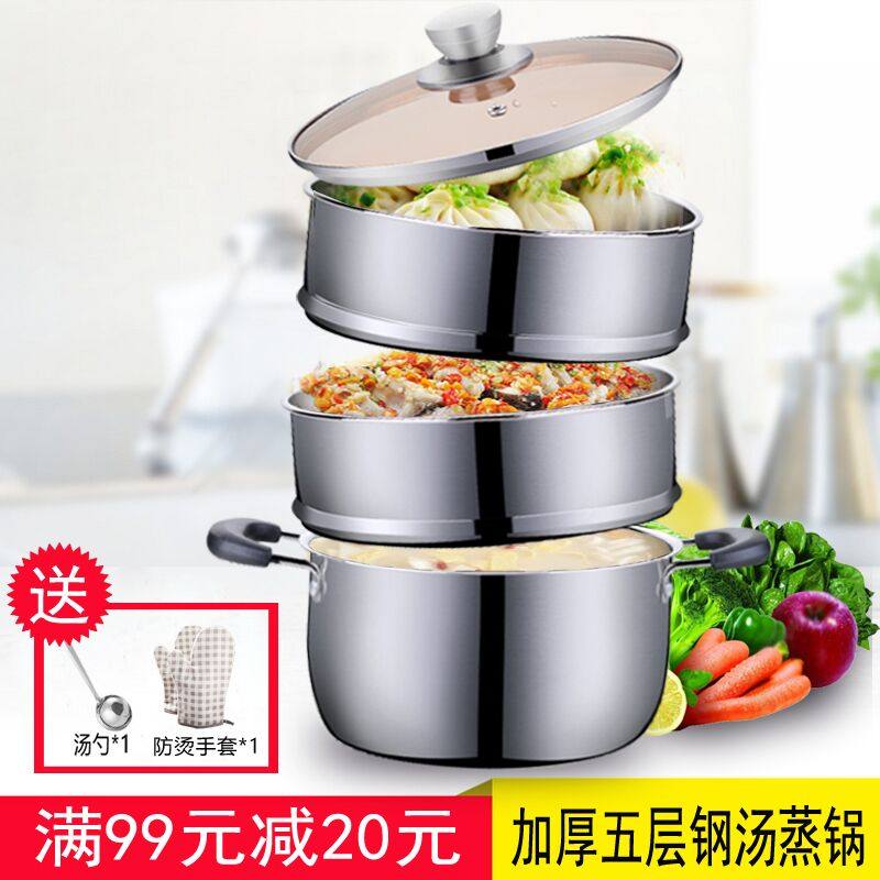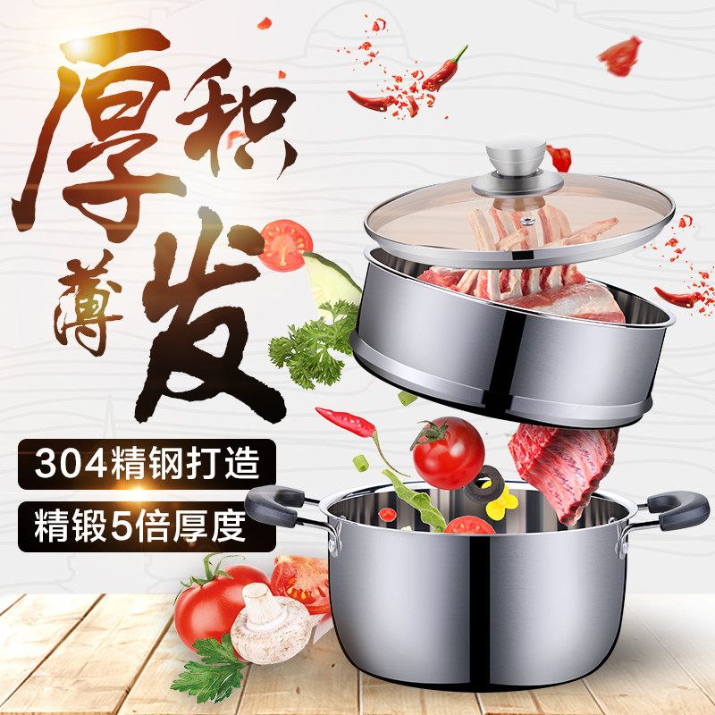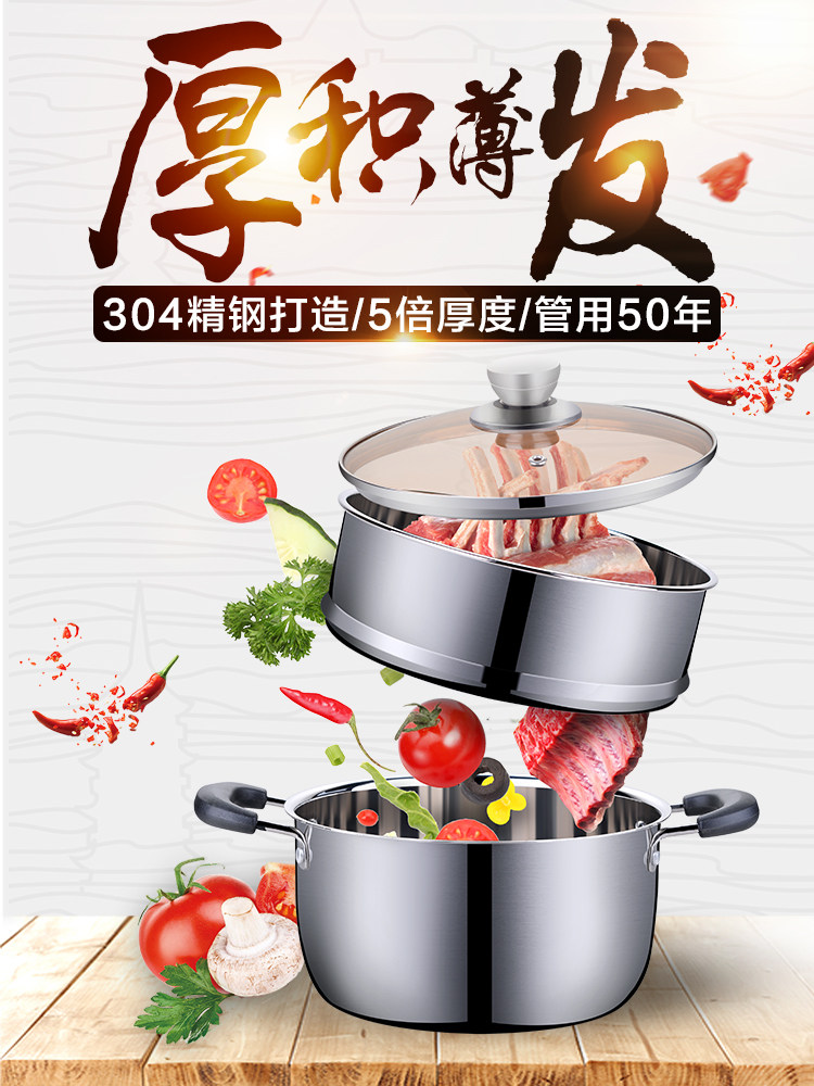 Маленький пароход 304 нержавеющая сталь три этажа утепленный Домохозяйство без палочки горшок индукционная печь газовая двойная ушная плита двухслойный Супник