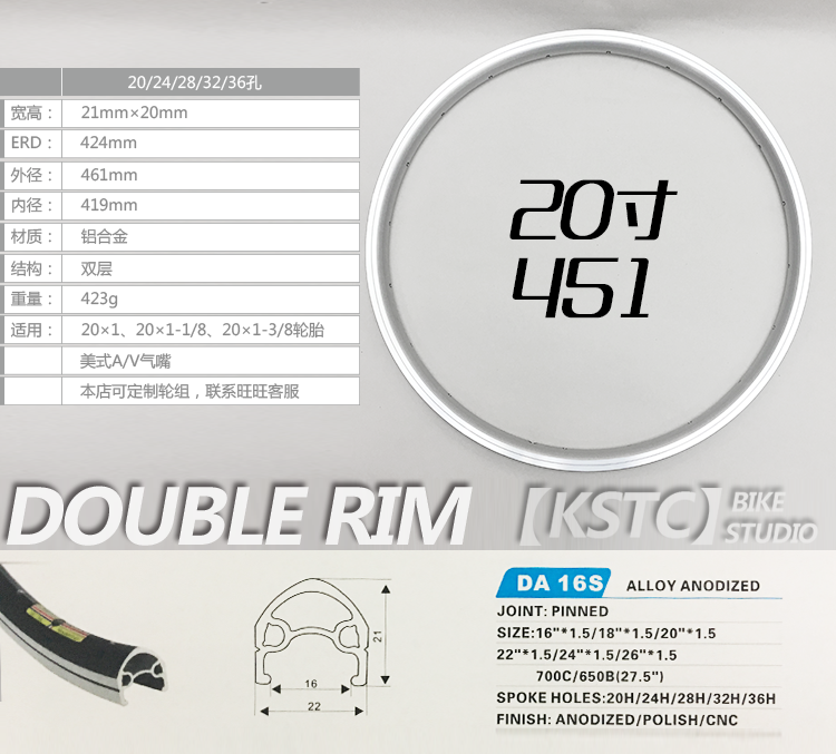 20-дюймовый обод 451 двухслойный алюминий Кольцо ножа из сплава 20/24/28/32/36 отверстий DAHON / P8 и т. Д. Применимо