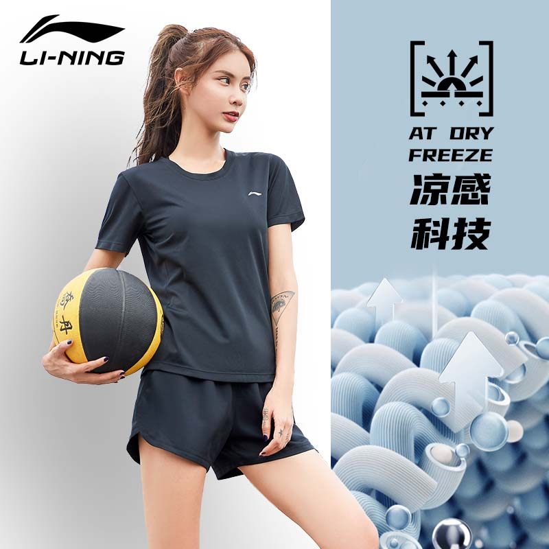 Li Ning, быстросохнущая дыщащая шелковая летняя футболка, спортивный топ для фитнеса, короткий рукав, для бега