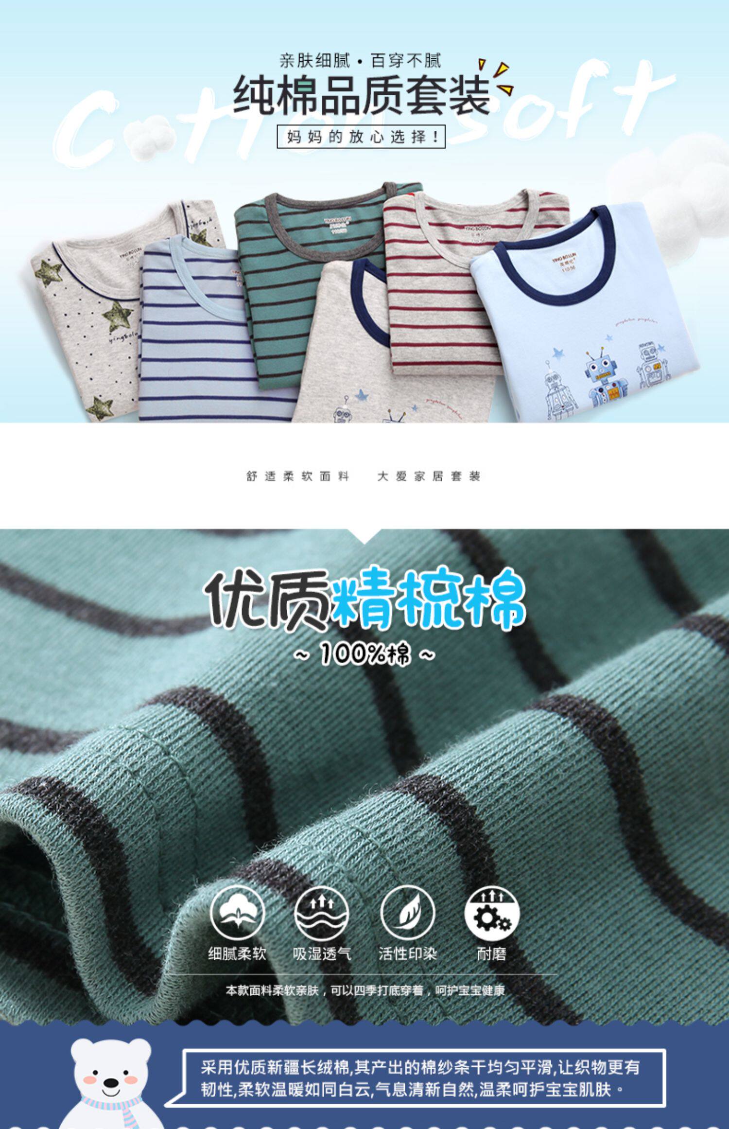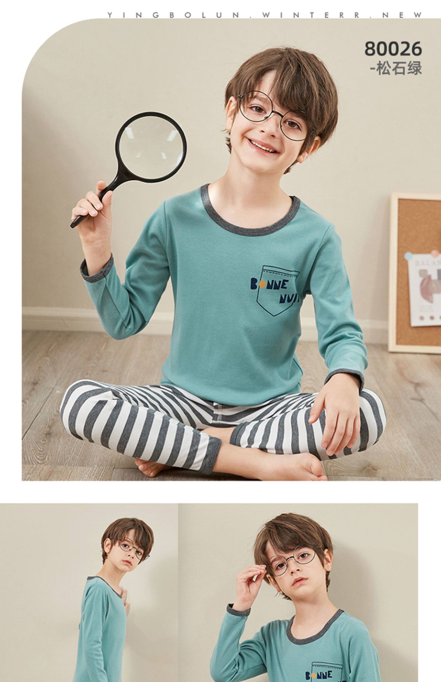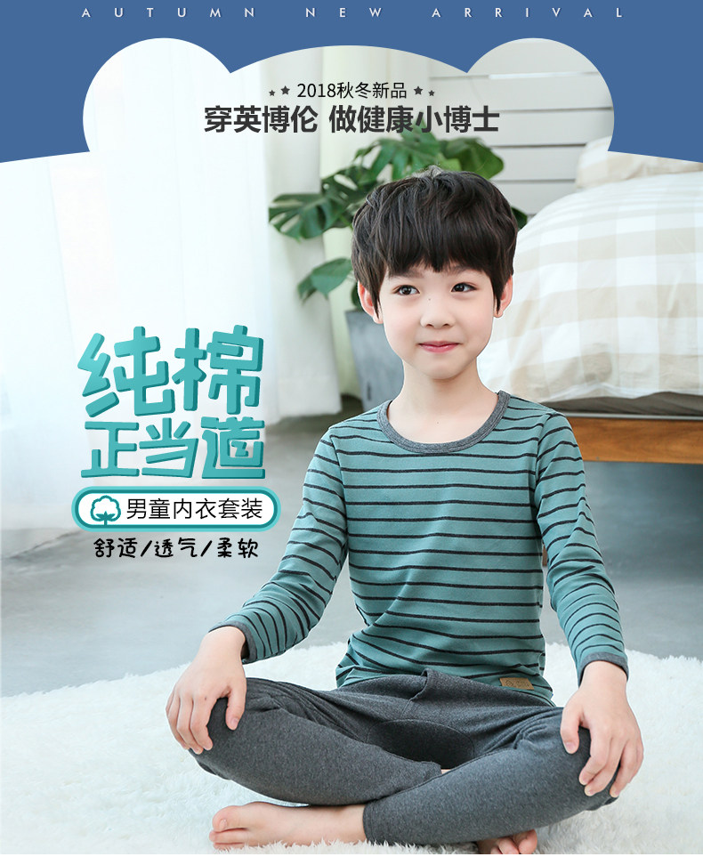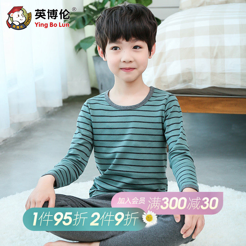 Британец чистый хлопок на мальчика нижнее белье комплект полностью хлопок Тонкий стиль детские Qiuyi Qiki брюки дети демисезонный пижама