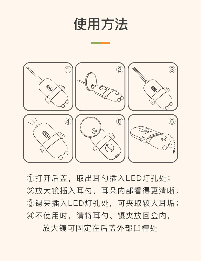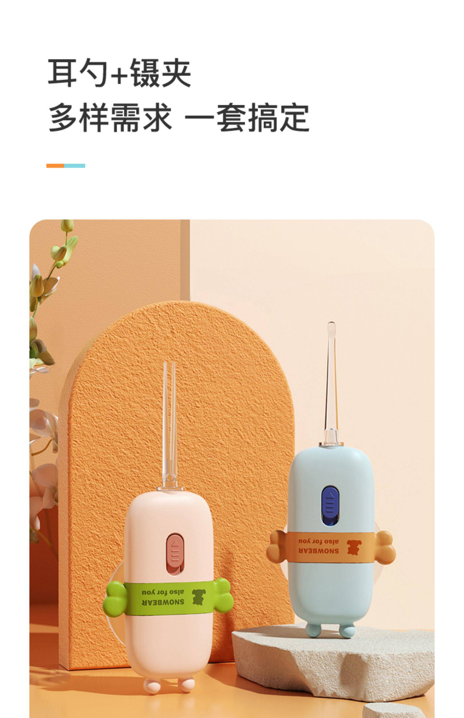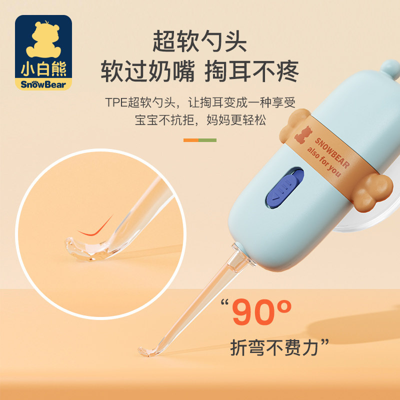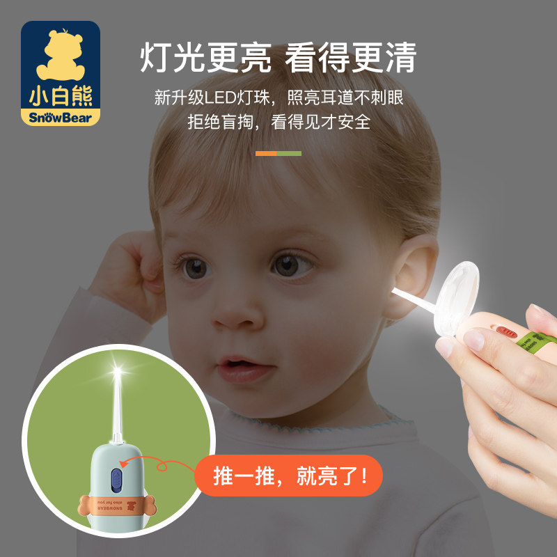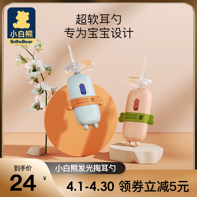 Небольшой белый Медведь копает ложку детские для Световая ушная ложка свет на младенца детские Ухо, ухо, мягкая голова волшебная