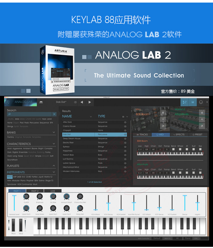 Arturia Keylab 88 Fatar Hnemposium полностью Тяжелая 88 -ключа CORNTRENCE CONTROPLER Профессиональная клавиатура MIDI