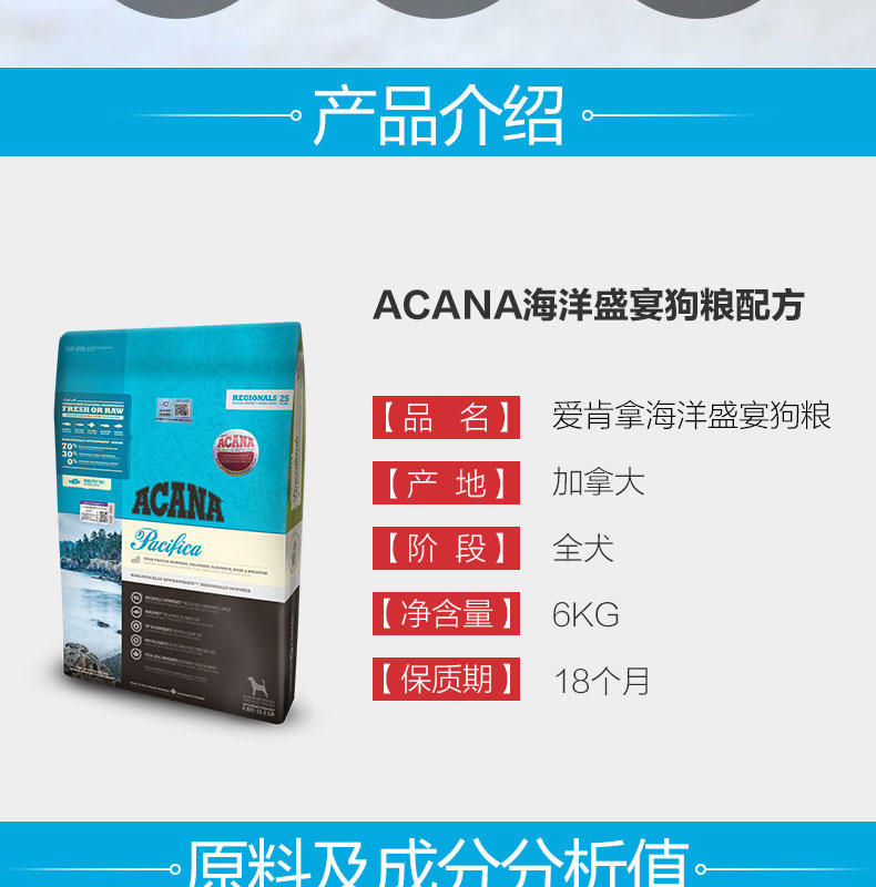 【Временный】Aiwen взял Acana Canada Imported Dog Grane Ocean Feast без Fishfish Мясо ароматизированная еда для собак 6 кг