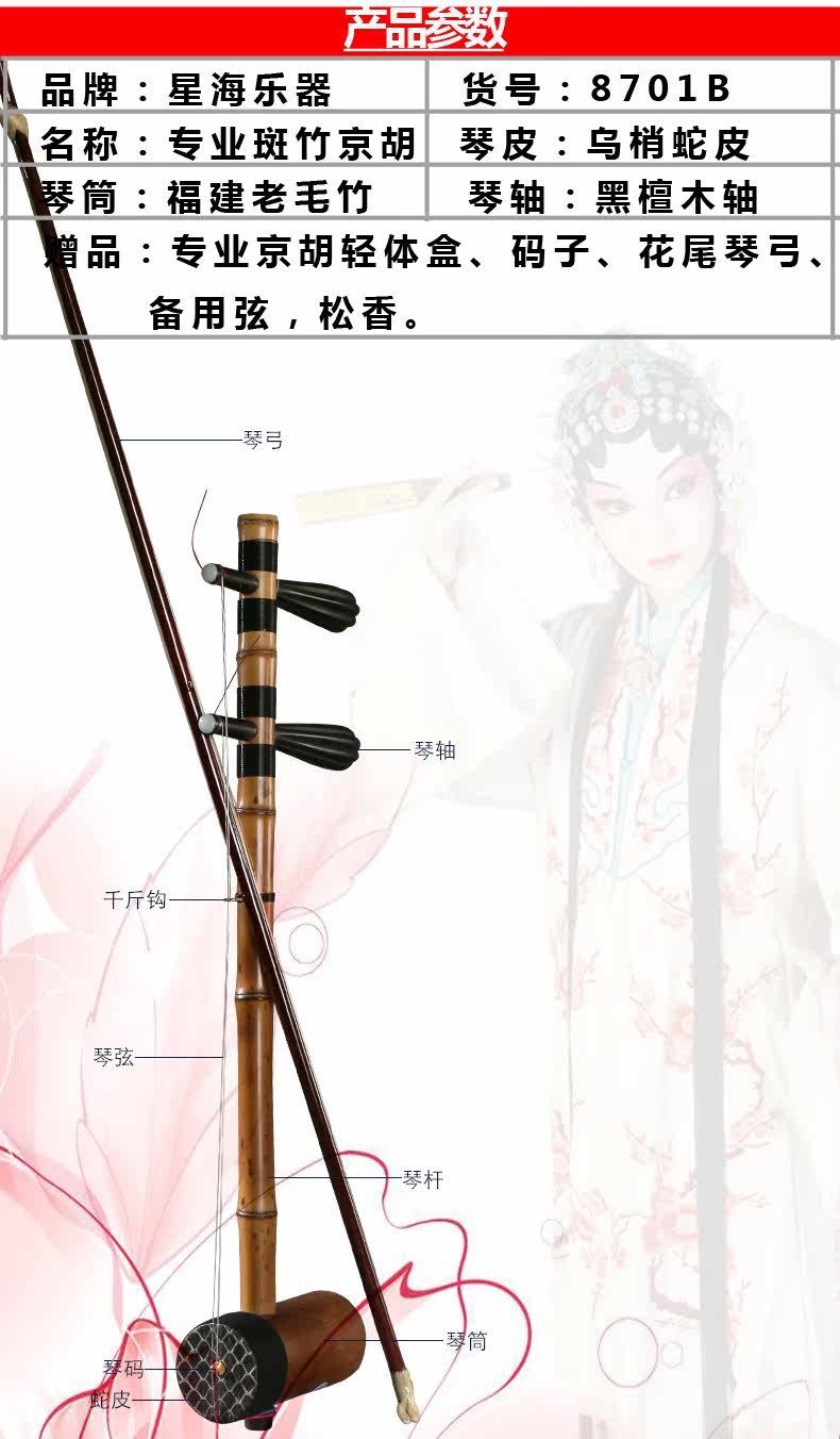 Профессиональный бамбук Jinghu Qin 8701B Beijing Xinghai Музыкальный инструмент Змеиная кожа Начинающий Самостоятельное обучение Профессиональное продвижение производительности