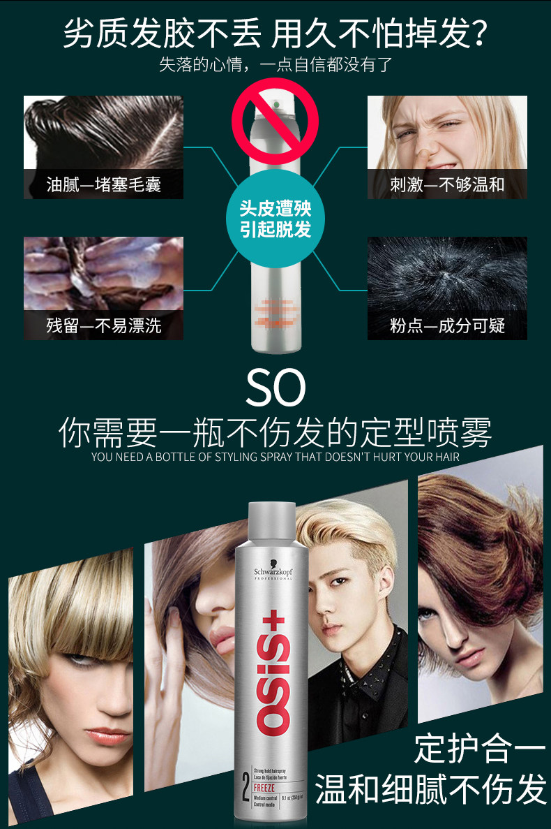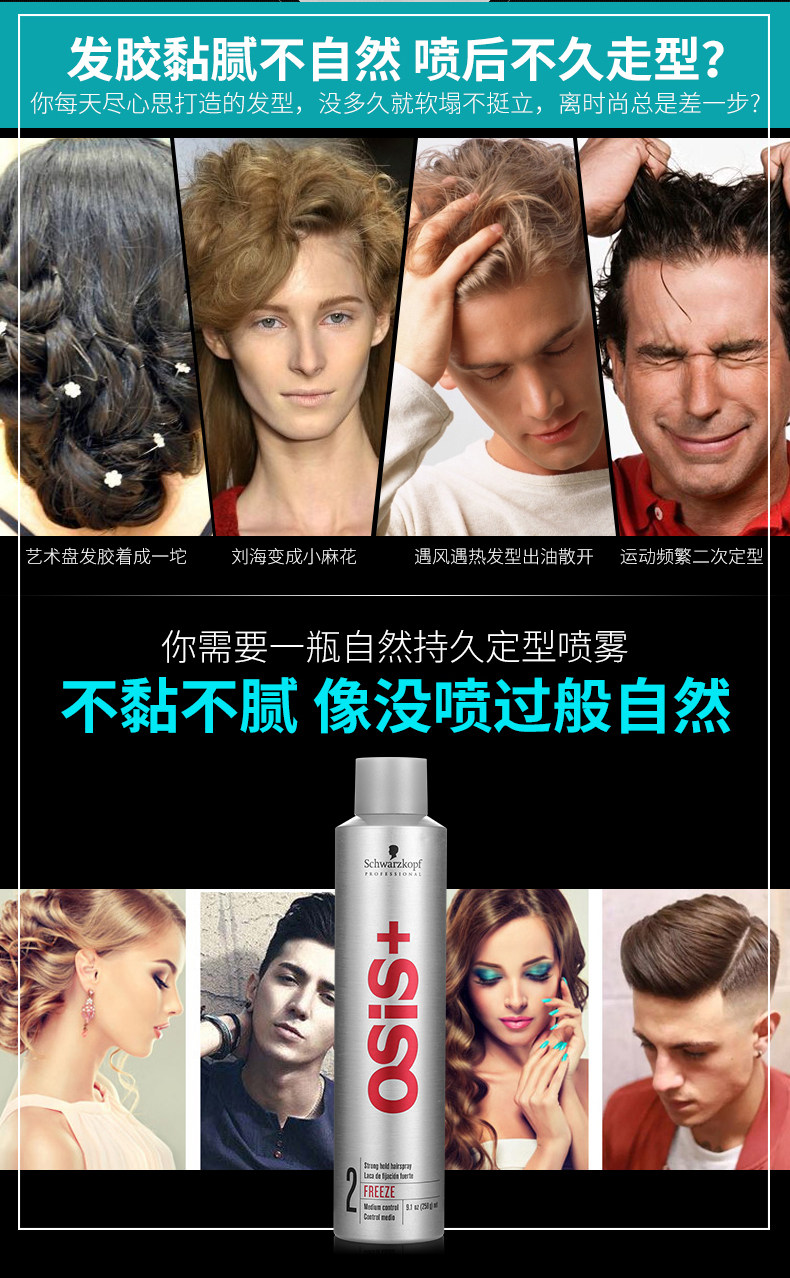 Schwarzkopf спрей для волос osis мощный спрей для укладки мужской женский Гель для укладки волос на воде сухой клей серебряный Импорт бутылок