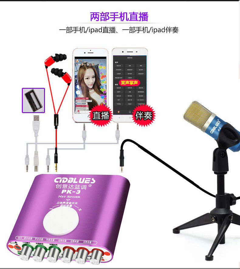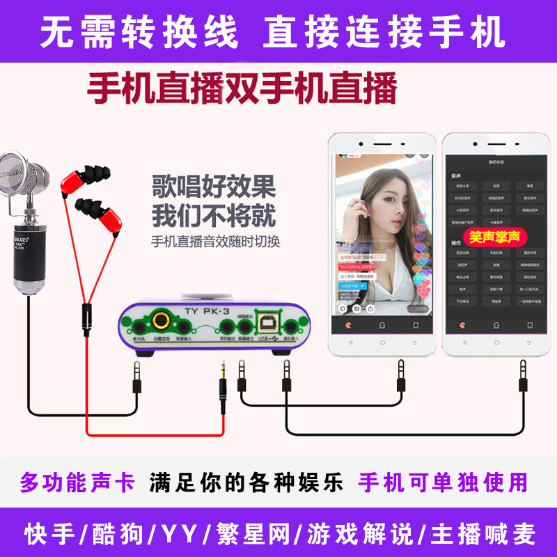 Компьютер внешний Звуковая карта комплект Живая звуковая карта мобильного телефона комплект Электронный преобразователь голоса, кричащий микрофон, поющий якорь, звуковая карта мобильного телефона